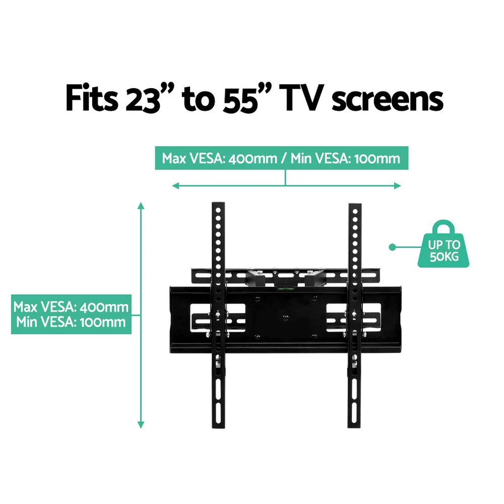 Maximise your living space and elevate your viewing experience with the Artiss TV Wall Mount Bracket, designed for 23"-55" LED LCD TVs. Constructed with a robust 1.5mm thick powder-coated metal frame, it supports up to 50kg, ensuring durability and strength. The slimline design accommodates various VESA measurements, offering seamless integration with your TV. Enjoy the flexibility of a multi-directional mount that tilts (-2° to +10°) and swivels (180°), allowing you to find the perfect angle. The six-arm frame provides extendable and retractable options for customised viewing. Easy to install, it's suitable for concrete and brick walls, making it the ultimate space-saving solution for epic entertainment.