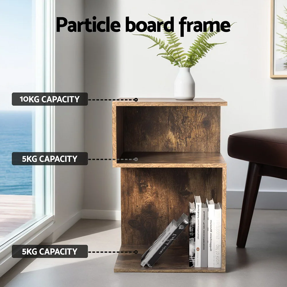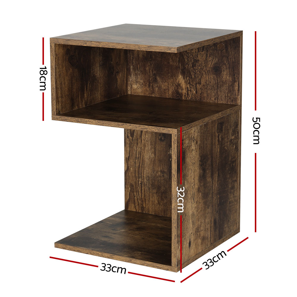Artiss UMENI Bedside Table - Rustic Oak S-Shaped Design, 2 Shelves, Durable Particle Board, Easy Assembly, 33x33x50cm