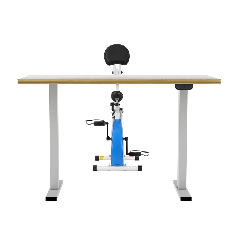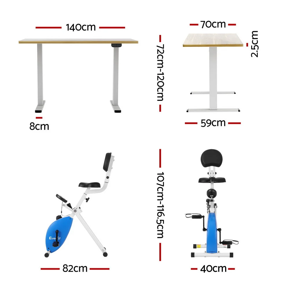 Artiss Under Desk Folding X-Bike & 140cm Automatic Standing Desk, Magnetic Resistance, Oak Finish, Height Adjustable
