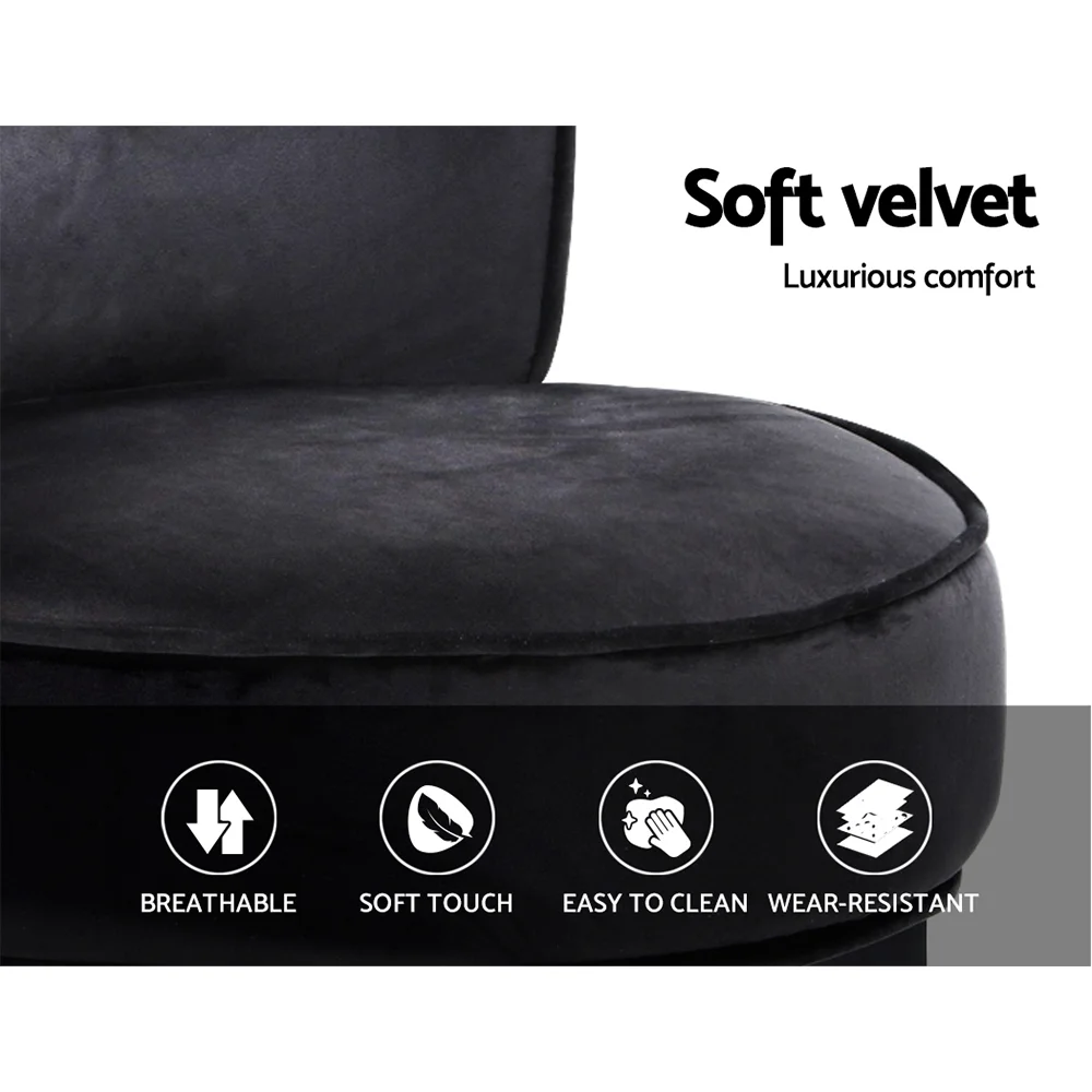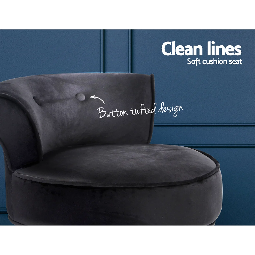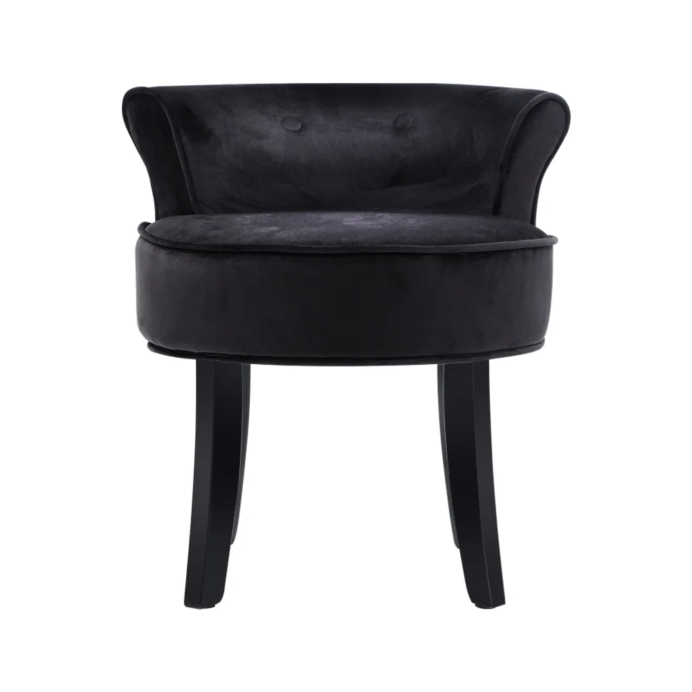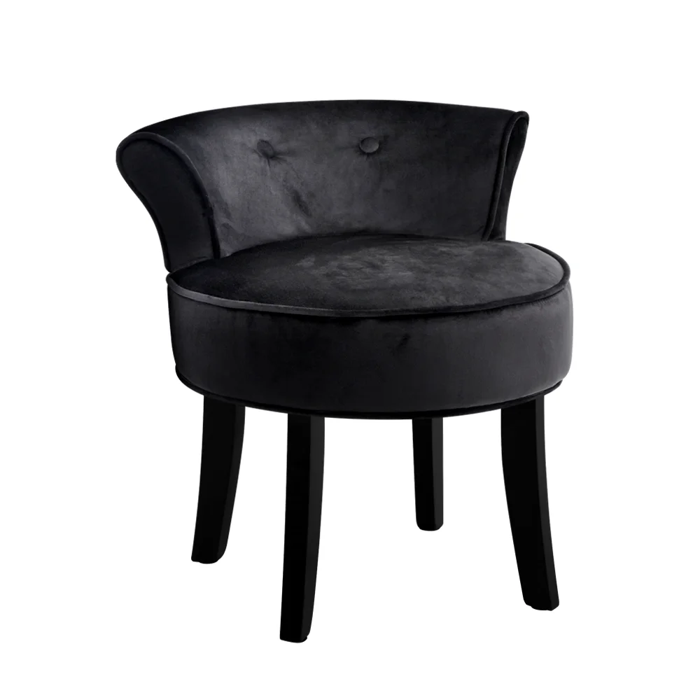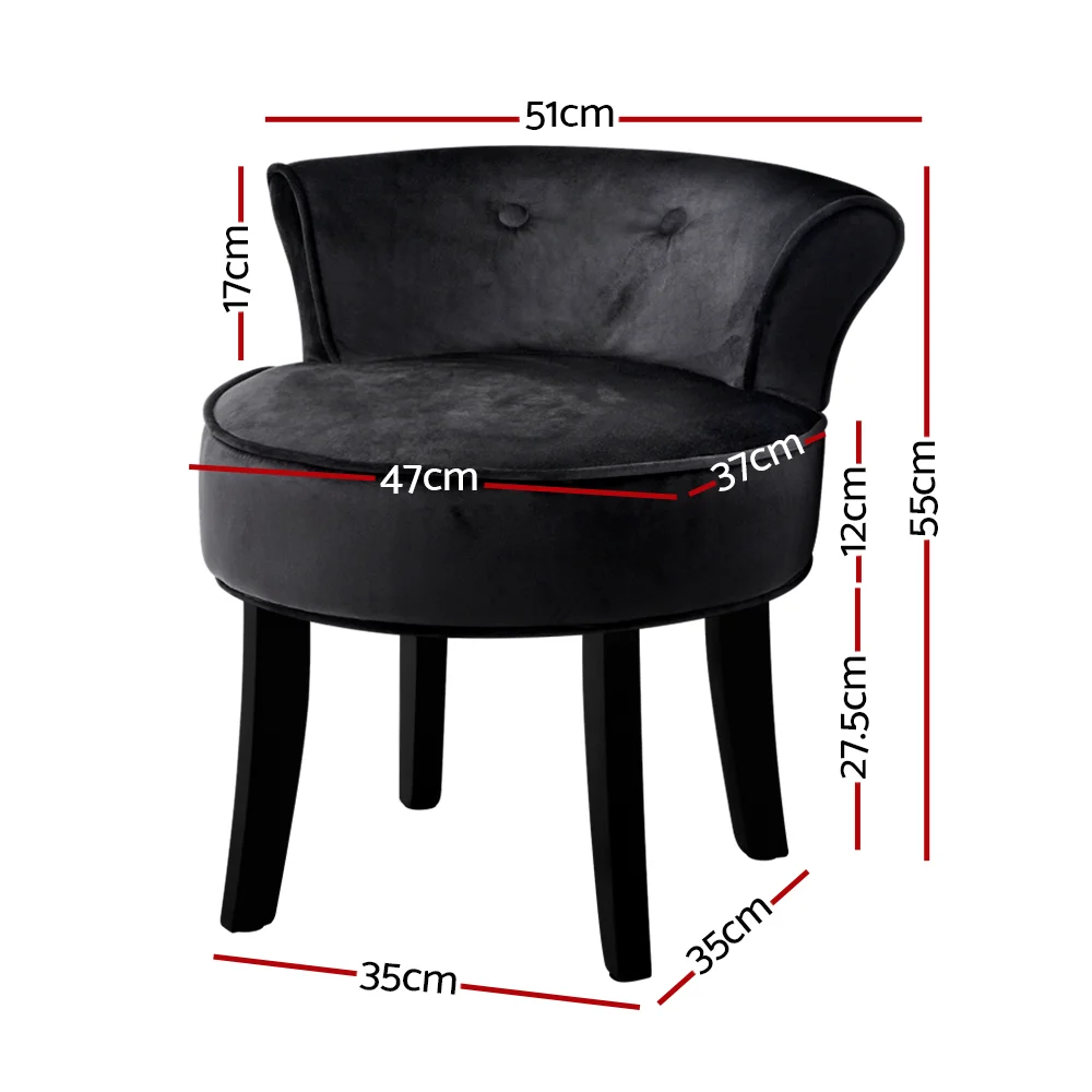 Artiss Vanity Stool, Velvet, Black, 51x51.5x55cm, Abella, Button Tufted Design, High-Density Foam Comfort
