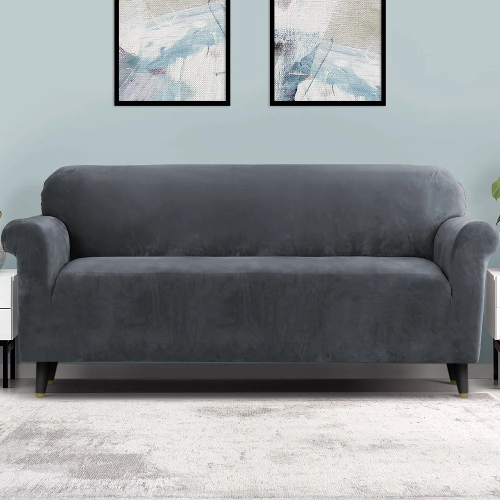 Transform your sofa with the Artiss 4-Seater Velvet Sofa Cover in elegant Grey. This stretchable cover offers exceptional protection against dirt, stains, and pet hair while providing a snug fit with anti-slip foam strips. Made from luxurious crystal velvet, it's machine washable for easy maintenance. Enjoy the warmth and comfort of this easy-to-install cover, perfect for revamping any sofa style effortlessly. Enjoy peace of mind with a 1-year warranty.