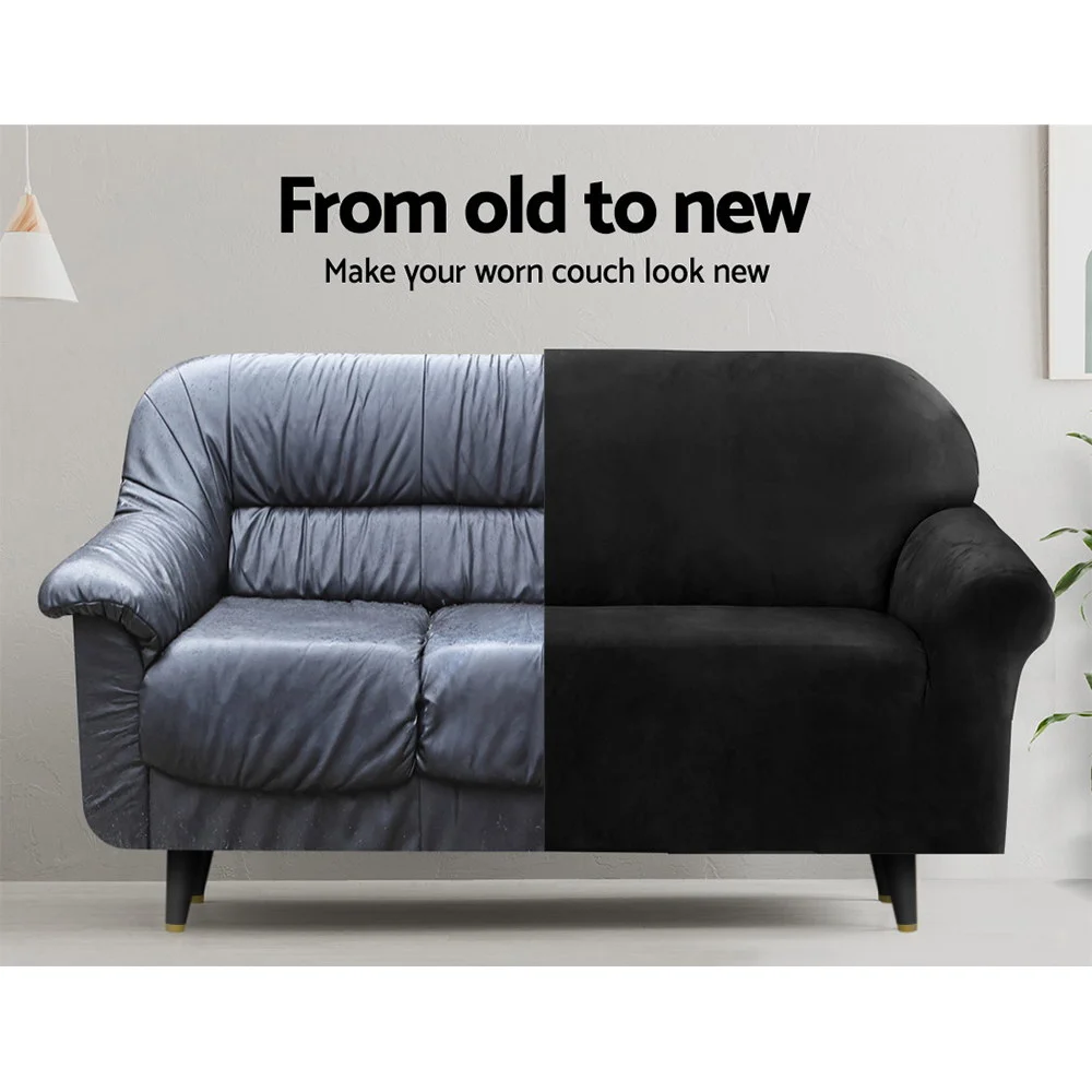Artiss 4-Seater Velvet Sofa Cover - Black, Stretchable, Anti-Slip, Machine Washable, Soft Crystal Velvet Protection