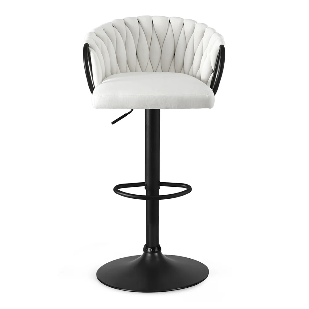 Artiss Adjustable Velvet Bar Stool - Single Kitchen Chair, Ergonomic Woven Design, Ivory, 82-102cm, 120kg Capacity