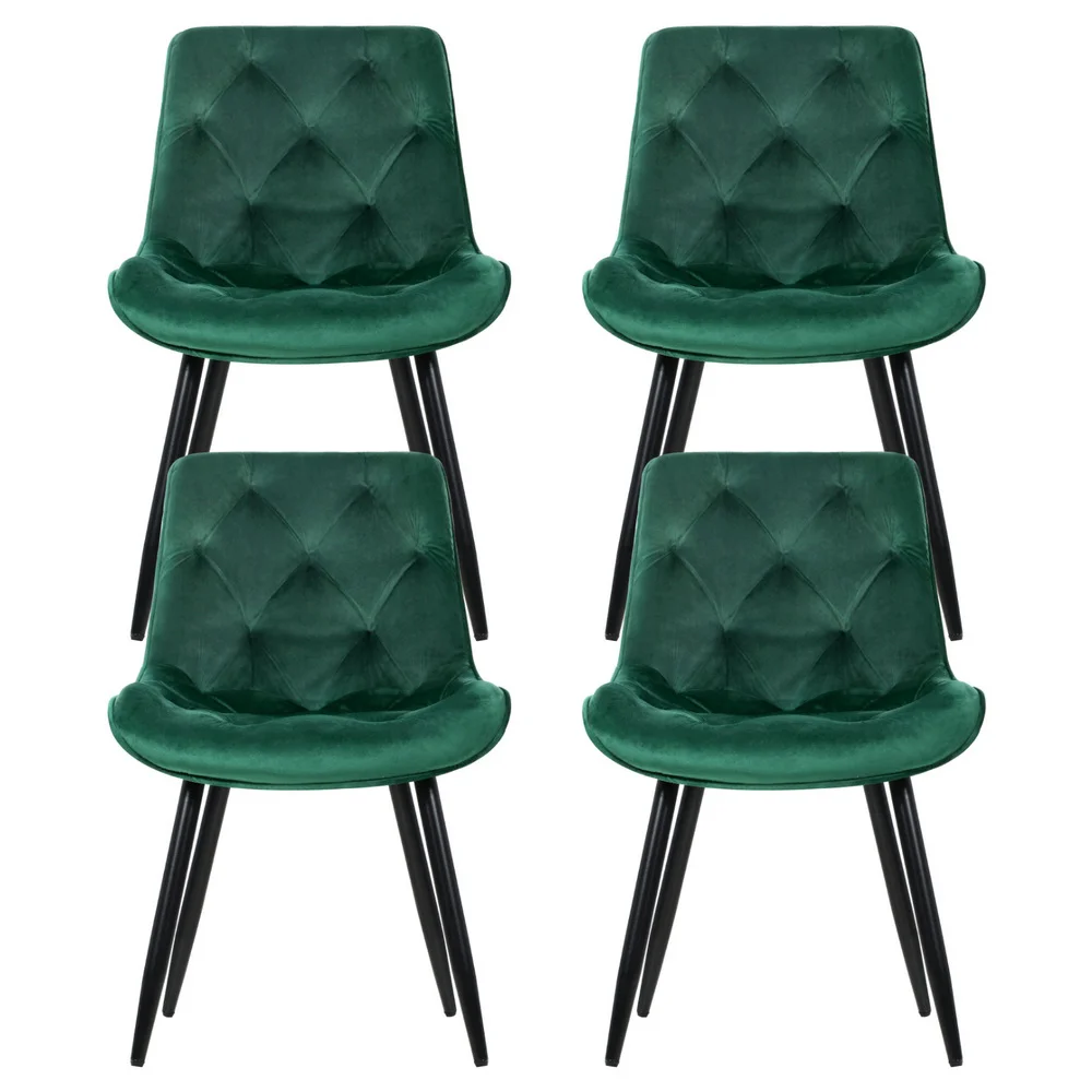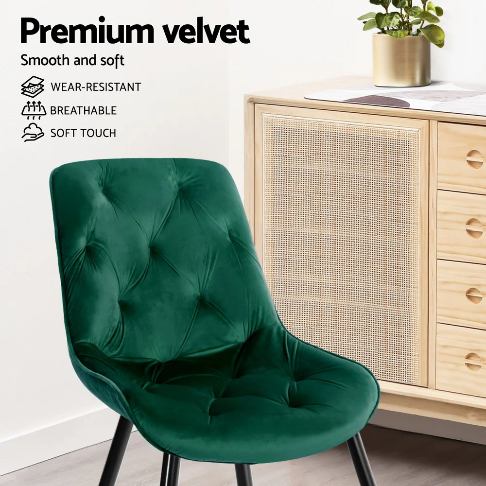 Artiss Dining Chairs Set of 4, Velvet Diamond Tufted, Green, Steel Legs, 150kg Capacity, Luxurious Comfort & Style