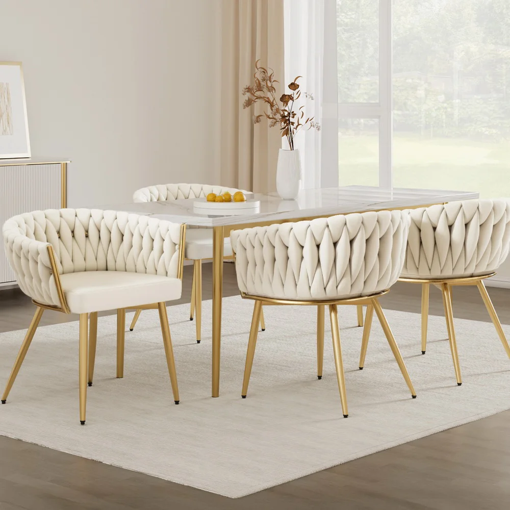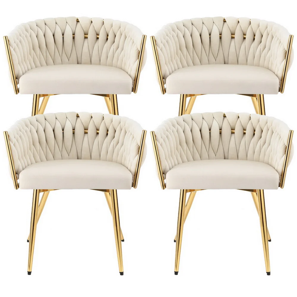 Artiss Set of 4 Velvet Dining Chairs - Beige, Solid Wood Frame, Steel Legs, 69cm, 150kg Capacity, Hand-Woven Backrest
