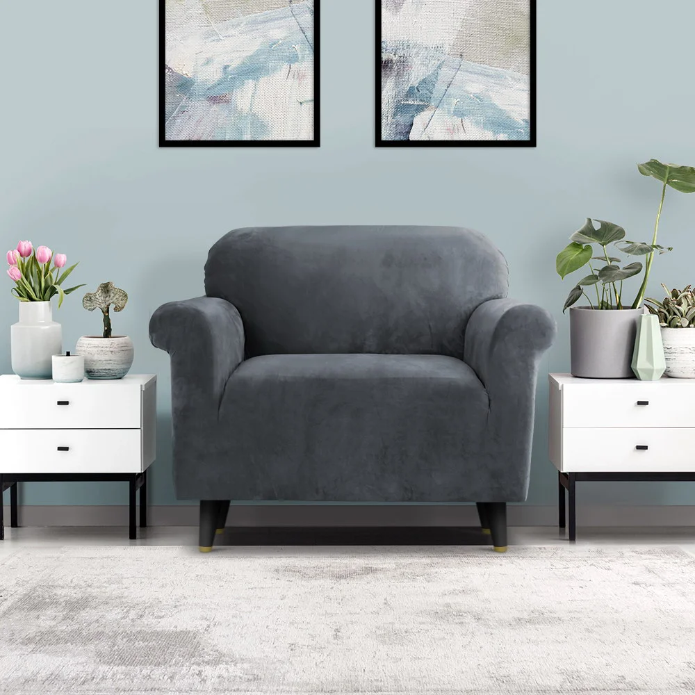 Artiss Velvet Sofa Cover for 1-Seater - Stretchable Crystal Velvet, Anti-Slip, Machine Washable, Grey, 81-120cm