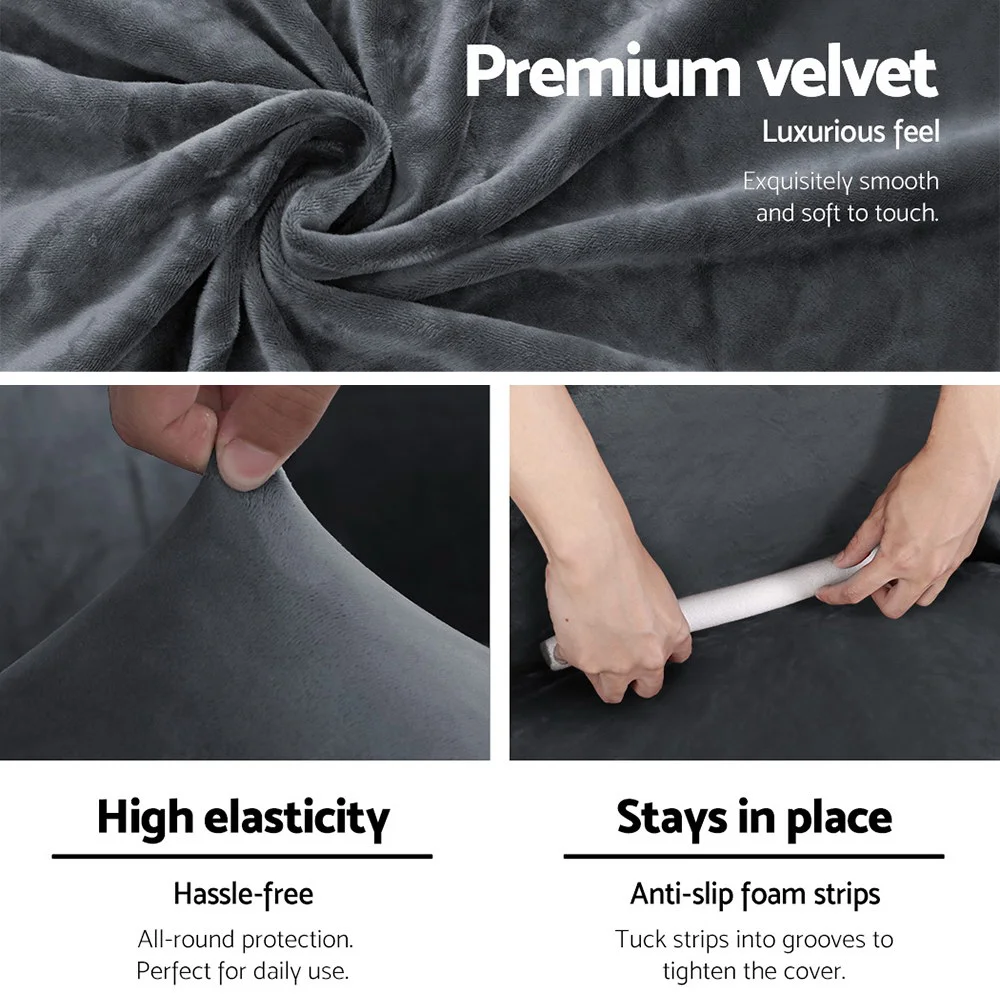 Artiss Velvet Sofa Cover, Stretchable, Anti-Slip, Machine Washable, Grey, 3-Seater, 183cm-223cm, All-Round Protection