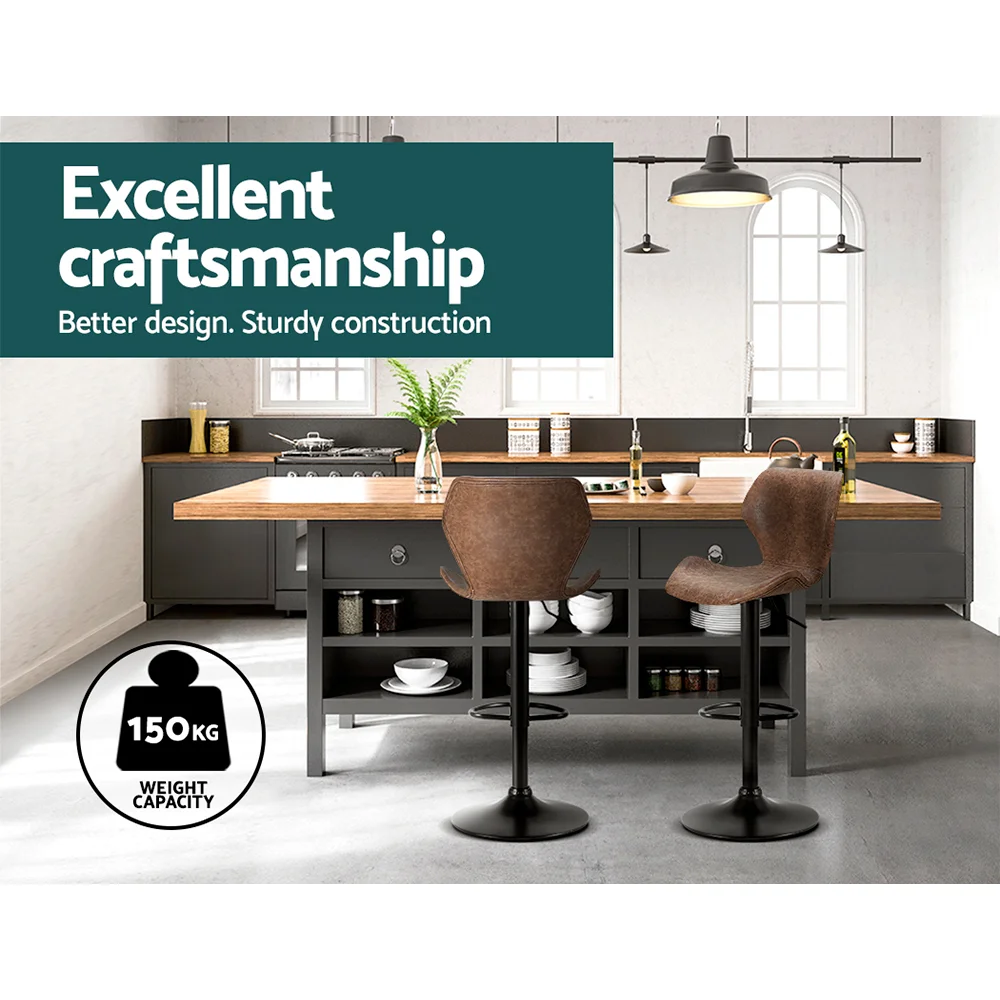 Artiss Frawley Bar Stools - Vintage Brown PU Leather, Swivel Gas Lift, Adjustable Height, 360° Rotatable, Set of 2
