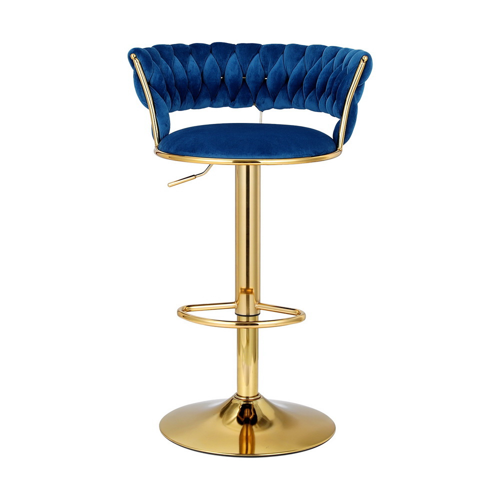 Artiss Vivien 2x Bar Stools - Navy Velvet, Hand-Woven Back, Adjustable Height, 360° Swivel, Steel Base, 150kg Capacity