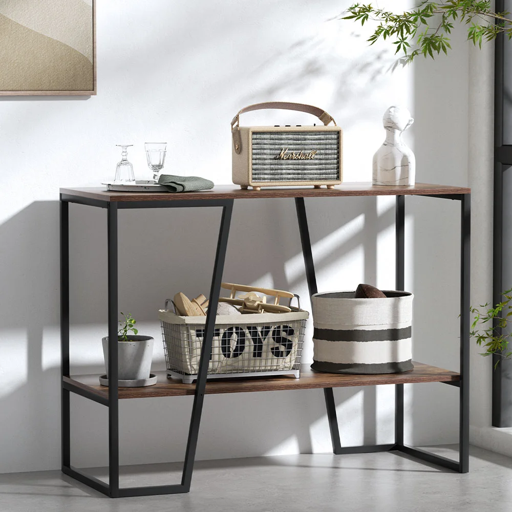 Artiss Cora 2-Tier Console Table - 106CM Walnut & Black, Sturdy Particle Board, Anti-Rust Steel, 30KG Capacity