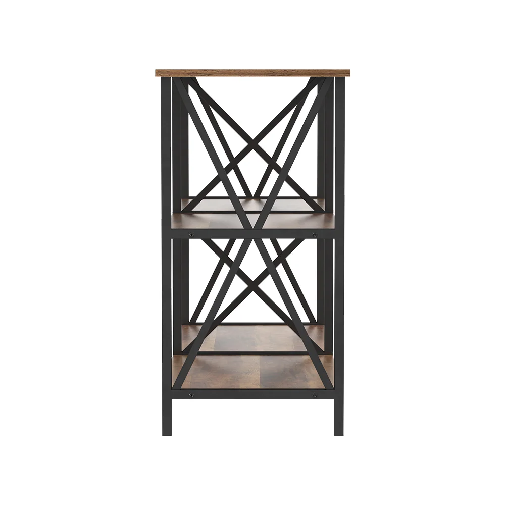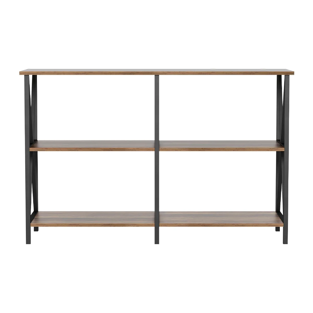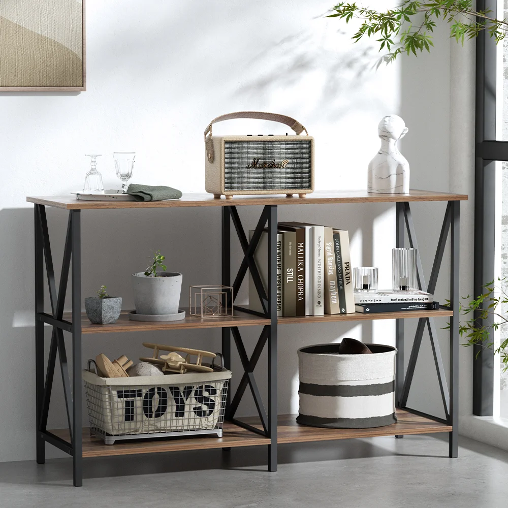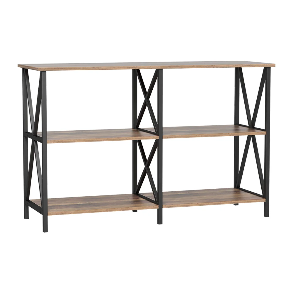 Artiss Xiah 120CM Walnut Console Table - 3-Tier Storage, Industrial Design, Particle Board & Steel, Easy Assembly