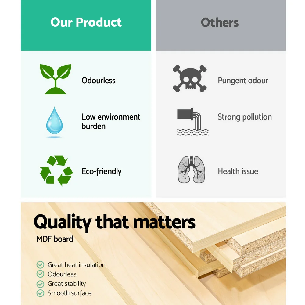 - Frame material: Particle board