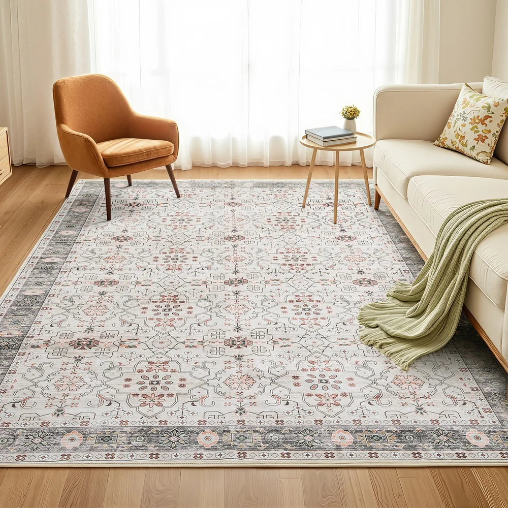 Artiss 200x290cm Washable Persian Floor Rug - Teal & Blush, Vintage Design, Polyester, Anti-Slip, Low-Profile Carpet