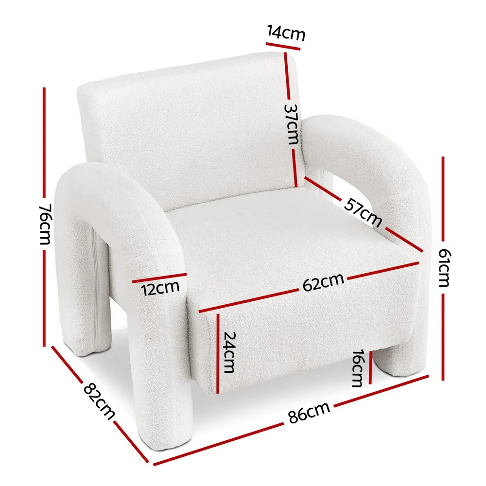 Artiss Bouclé White Armchair - Curved Seat, Pine Wood Frame, 150kg Capacity, Easy Assembly, 86x82x76cm Lounge Sofa