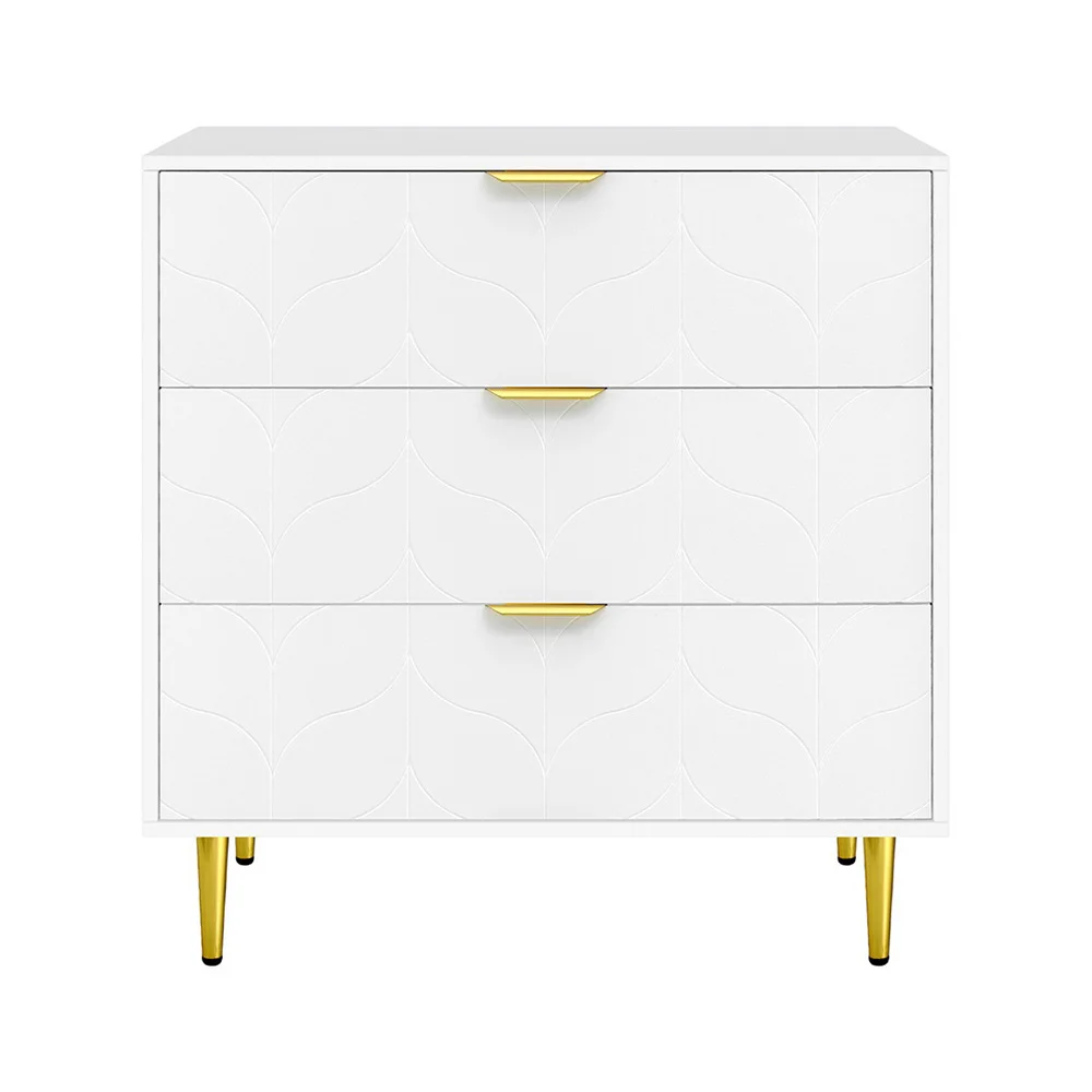 Artiss 3-Drawer Lowboy Cabinet, White, 80x45x85cm, Carved Design, Metal Handles, Smooth Runners, Easy Assembly