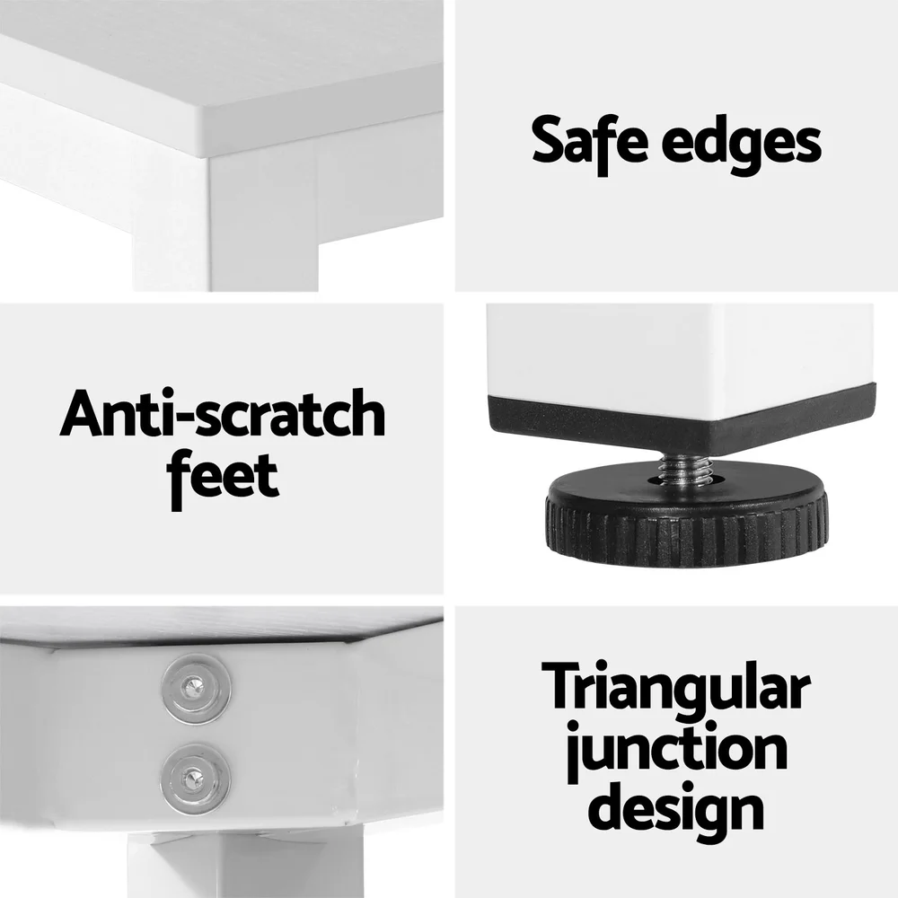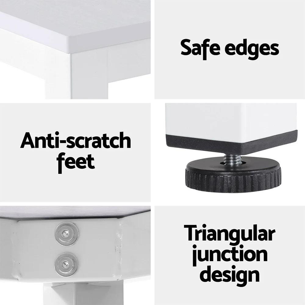 Conquer your workload in style and comfort with the Artiss Computer Desk Home Office Study Table in White. This versatile desk features a wide desktop providing ample space for monitors, keyboards, and office essentials. The 15mm thick particle board maintains a sleek profile, while a sturdy metal frame ensures stability. Anti-scratch feet protect your floor, and smooth, rounded edges enhance safety. With a modern design, the desk is easy to assemble, making it a stylish addition to any home or office. Enjoy peace of mind with a 1-year warranty.