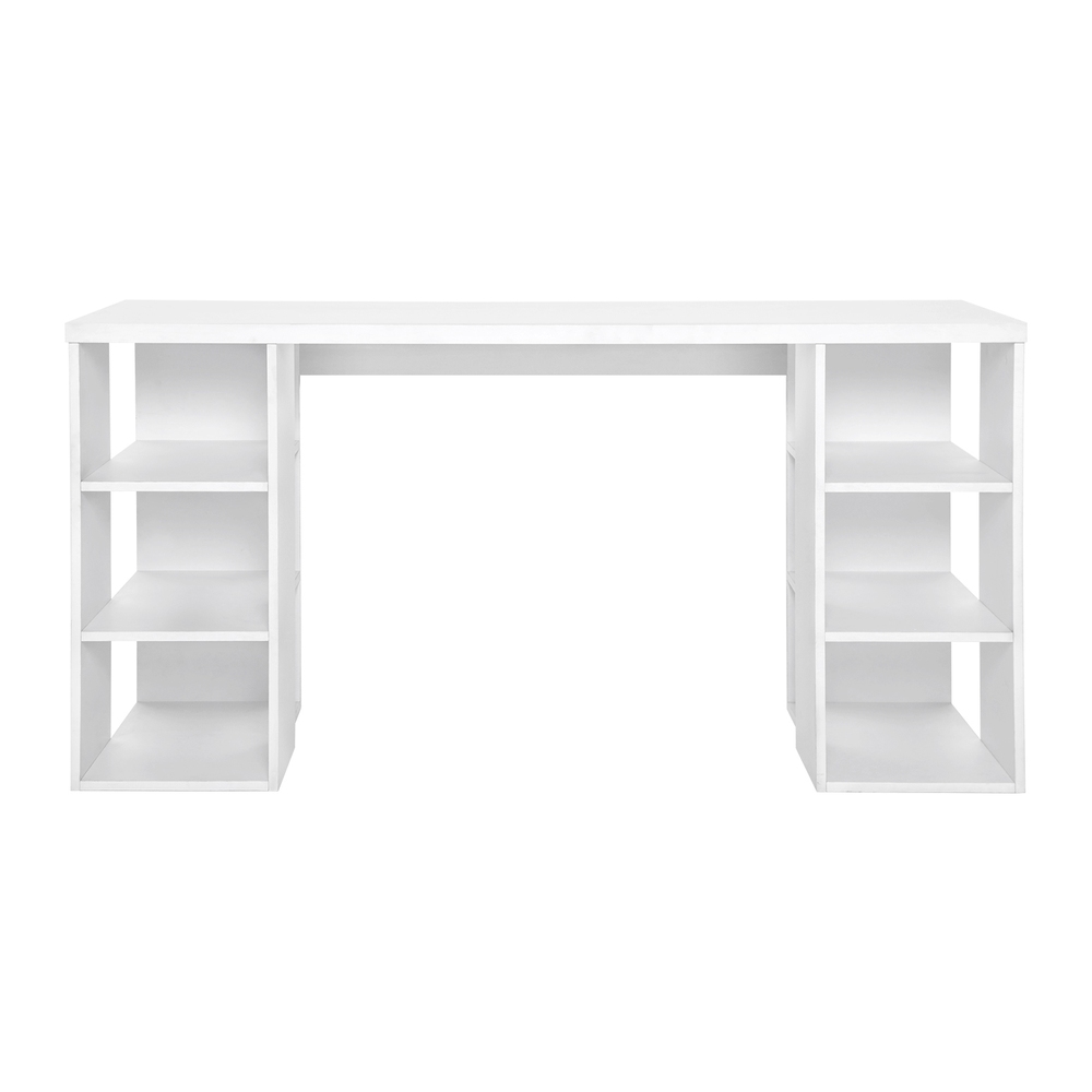 Enhance your workspace with the Artiss Computer Desk Bookshelf in classic white. Crafted from durable melamine, this desk features a sleek modern design with a 150cm wide surface and dual 3-tier storage shelves that double as sturdy desk legs. Perfect for both home and office, its spacious layout and ample storage make it ideal for organizing personal and work-related files. With its timeless appeal, this desk seamlessly fits any décor, promoting smarter, more efficient work. Assembly required.