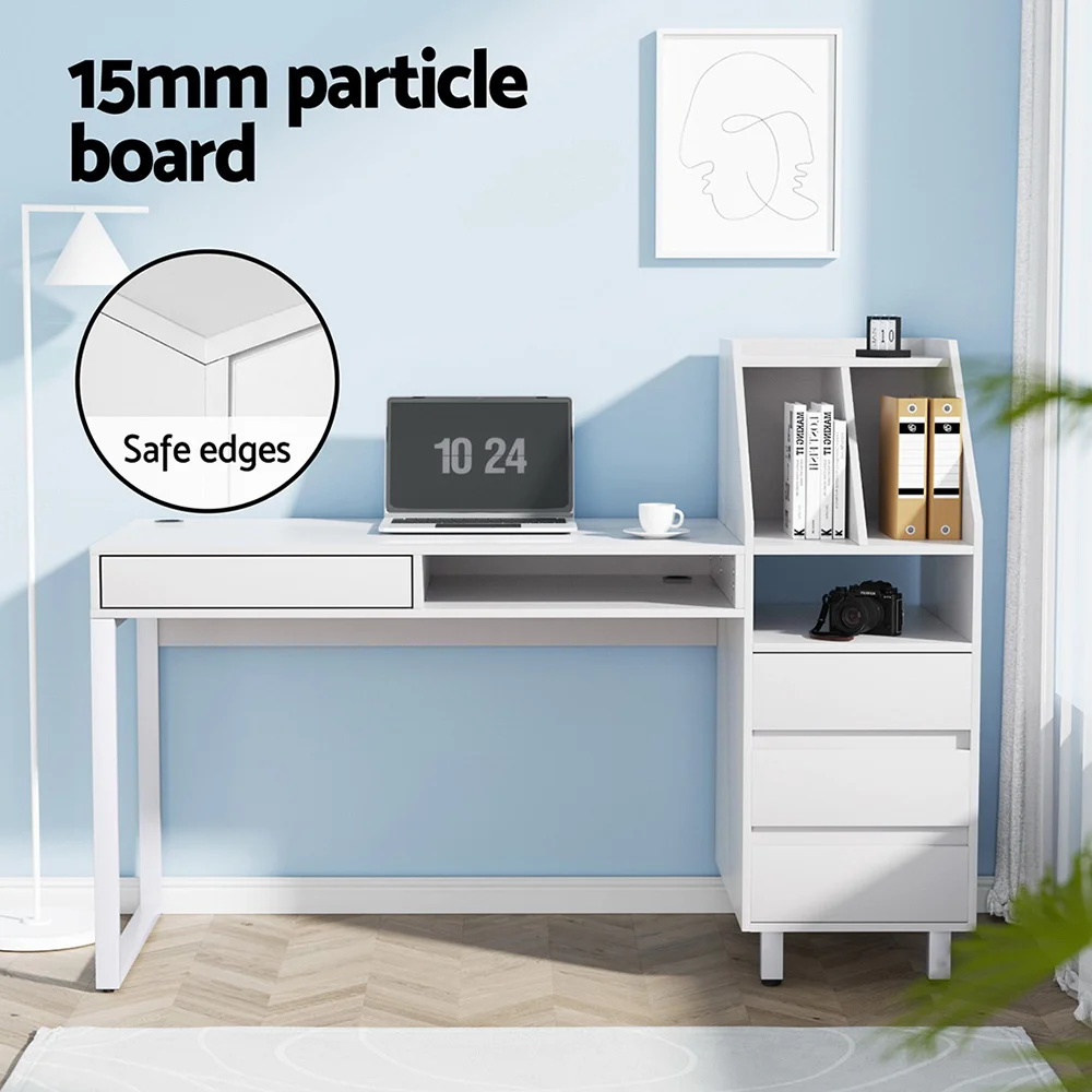 Artiss Computer Desk with Bookshelf, 4 Drawers, Melamine Finish, Metal Base, 150cm x 60cm x 110cm, White