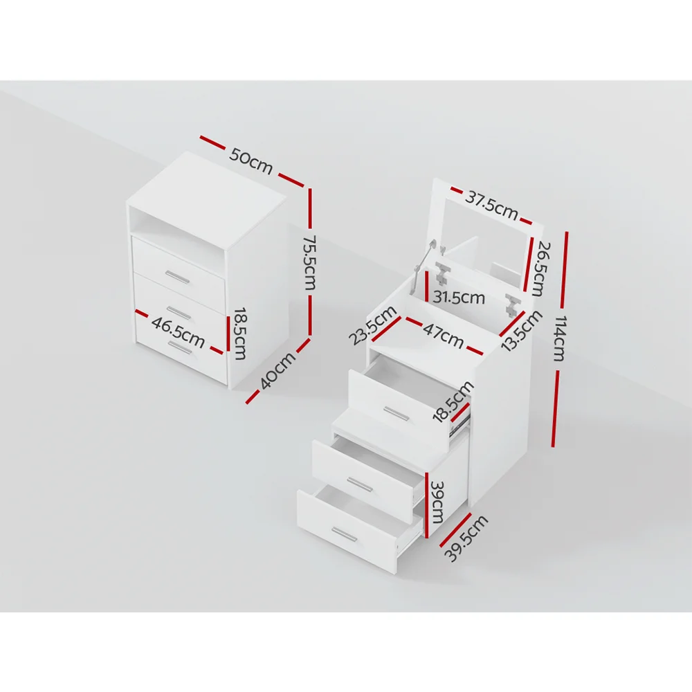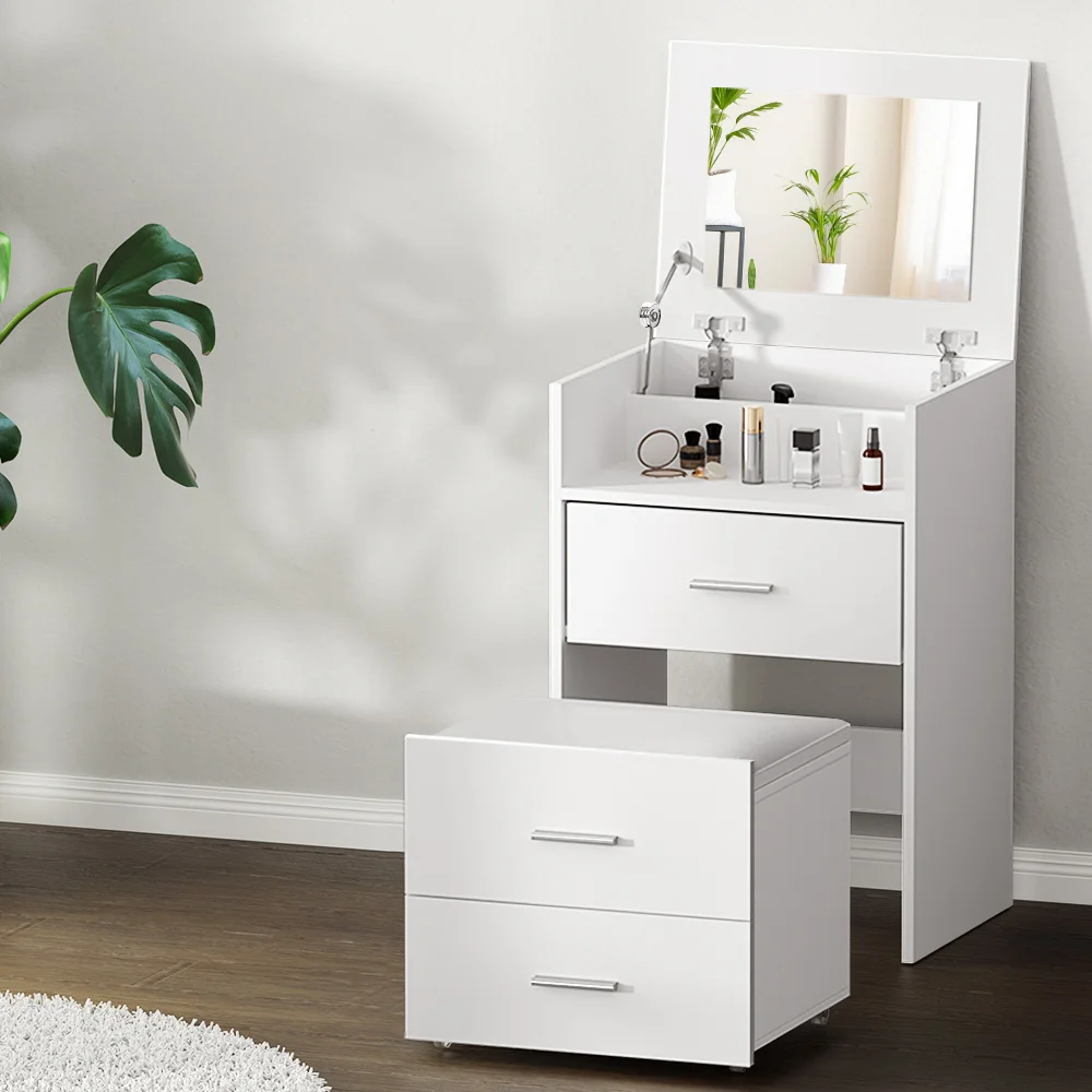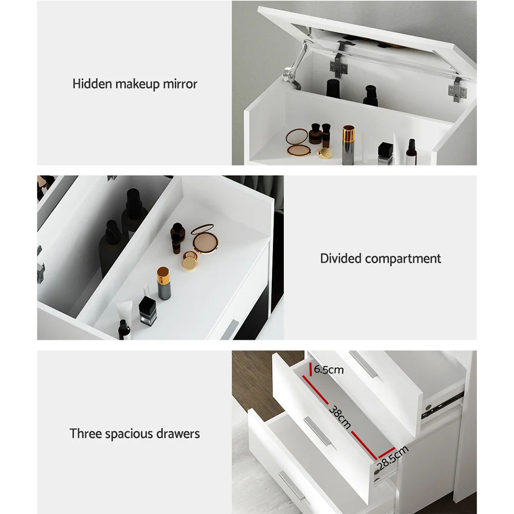 Artiss White 2-in-1 Dressing Table & Stool Set: Hidden Mirror, 3 Drawers, Eco-Friendly Materials, Space-Saving Design
