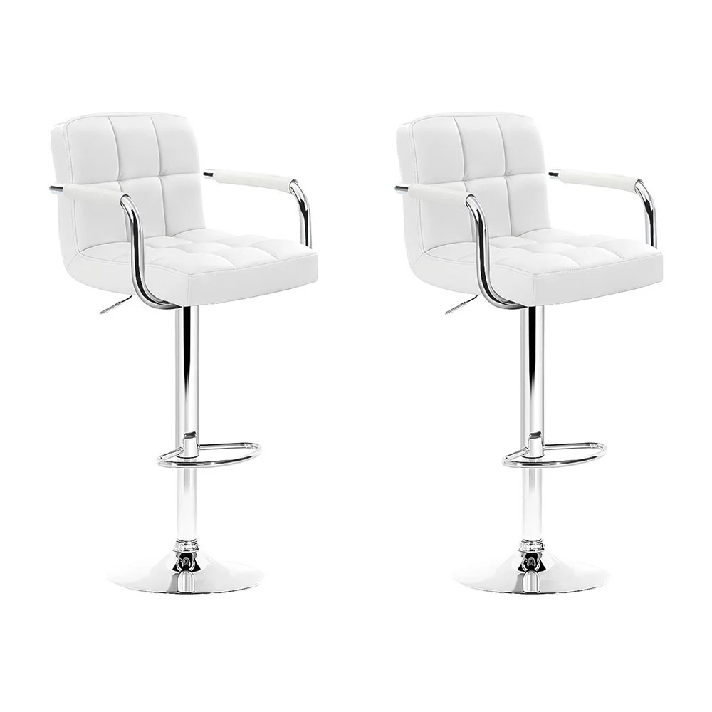 Artiss Set of 2 White Leather Bar Stools w/ Armrest, Gas Lift, Swivel, Chrome Base - Modern Kitchen & Dining Seating