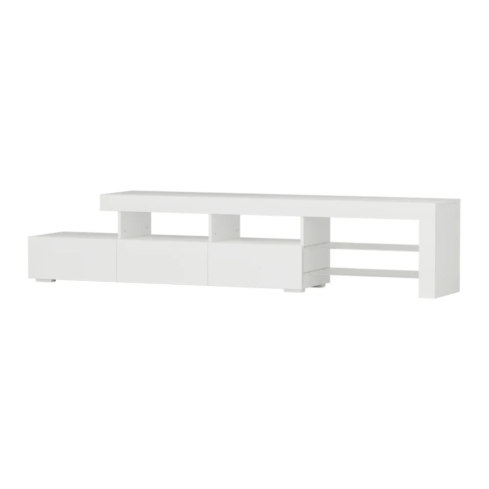 Enhance your living room with the Artiss Entertainment Unit TV Cabinet LED 215cm in White. This striking entertainment unit combines style and functionality, featuring customised RGB LED lighting with 16 colours and four dynamic modes. Crafted from durable 15mm particle board, it boasts a UV high-gloss finish and melamine for a sleek look. With spacious drawers and tempered glass shelves, it's perfect for organising your entertainment essentials. Easy to assemble, it promises a contemporary and unique aesthetic.
