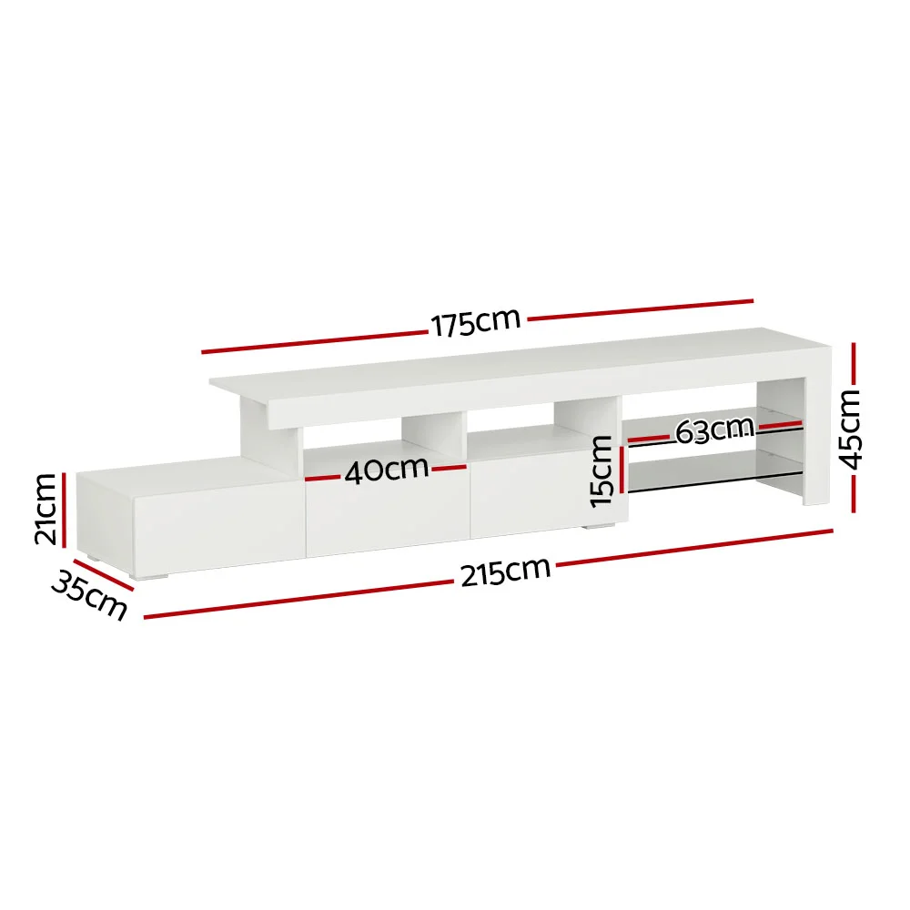 Artiss 215cm LED Entertainment Unit TV Cabinet - White, High Gloss, RGB Lighting, Glass Shelves, Modern Design