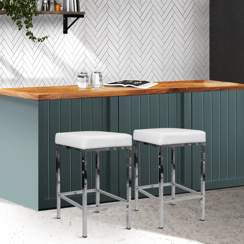 Artiss 2x Bar Stools - White PU Leather, Padded Seat, Chrome Steel Legs, 36x36x69cm, Modern Kitchen Seating, Set of 2