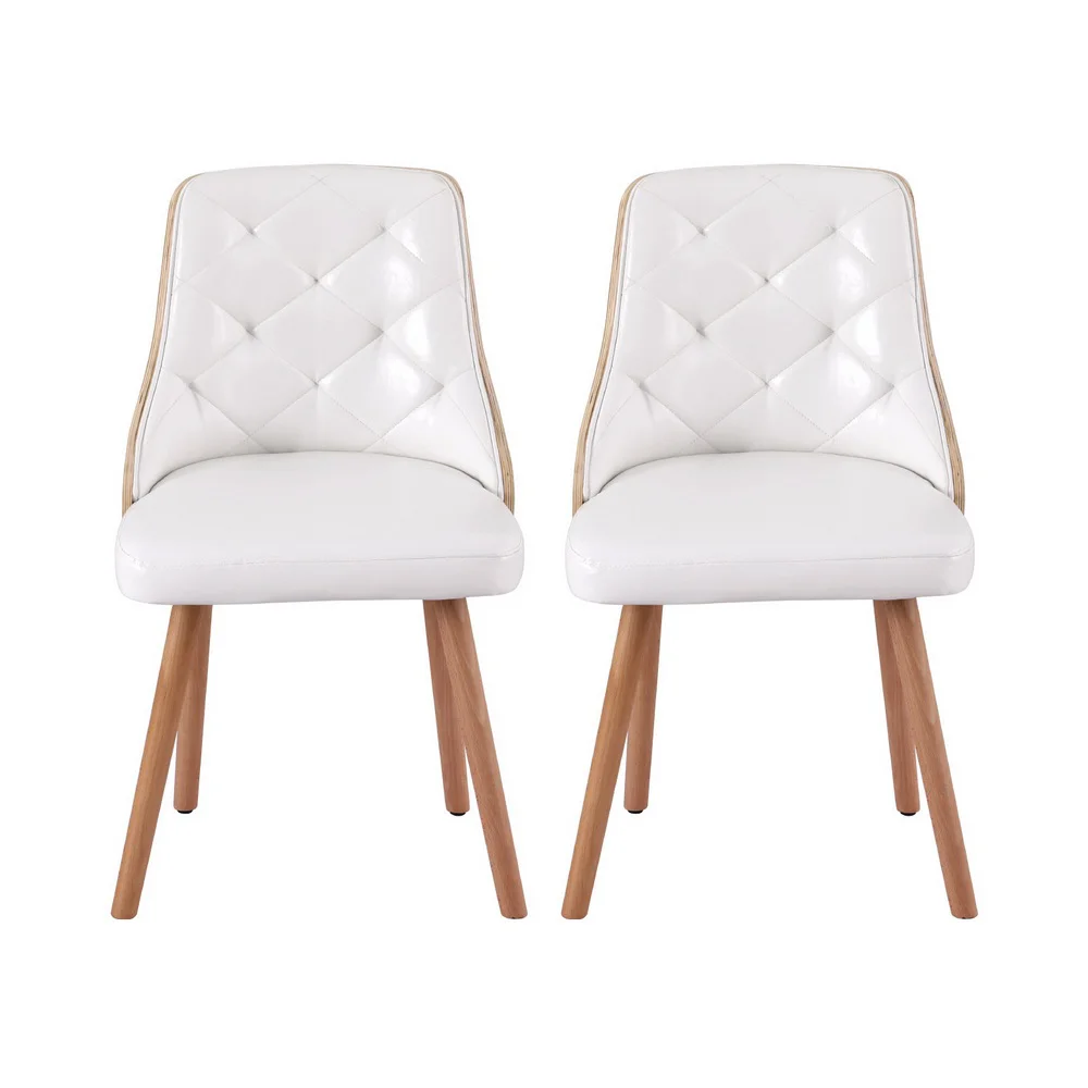 Artiss Set of 2 White Dining Chairs, PU Leather, Diamond Tufted, Wood Frame, Padded Seat, 150kg Capacity