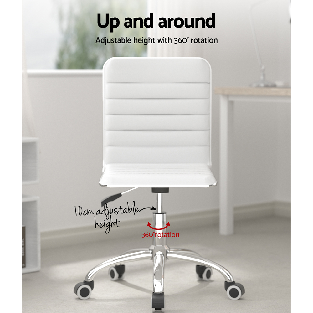 Artiss White PU Leather Office Chair, Low Back Design with 360° Rotation, Height Adjustable, 5-Wheel Metal Base