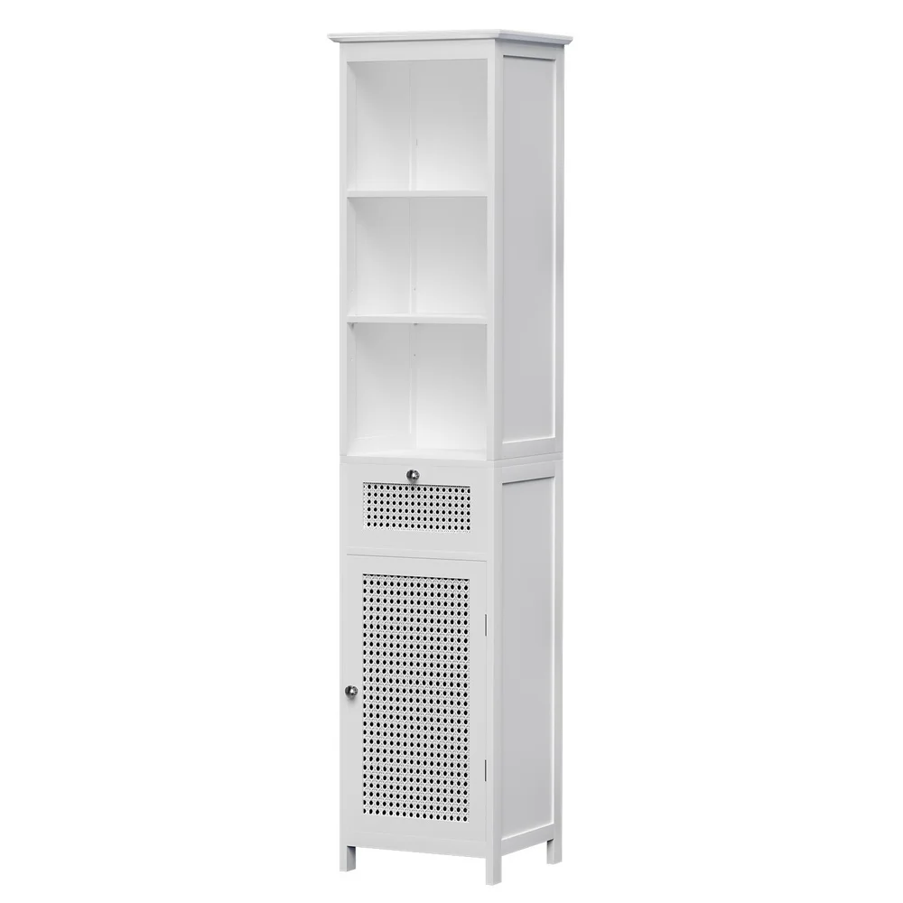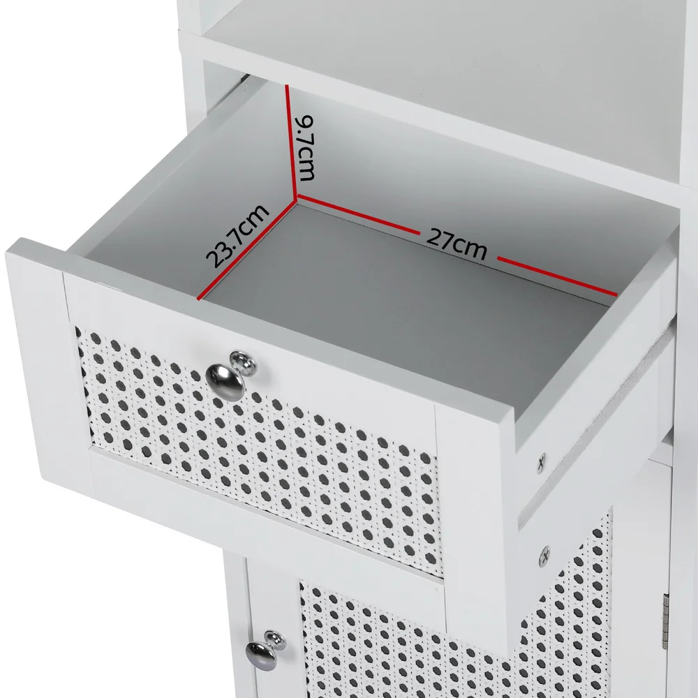 Artiss 161cm White Rattan Bathroom Cabinet - MDF Storage Tallboy with 3 Shelves, Drawer & Ventilated Doors