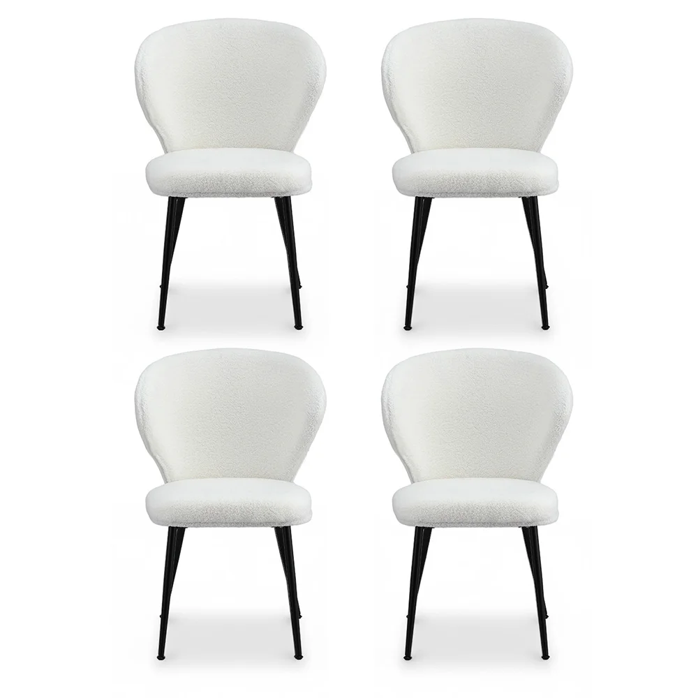 Artiss Set of 4 White Dining Chairs: Sherpa Bouclé Wing Back, Ergonomic Design, 150kg Capacity, Metal Legs, 60x50x90cm