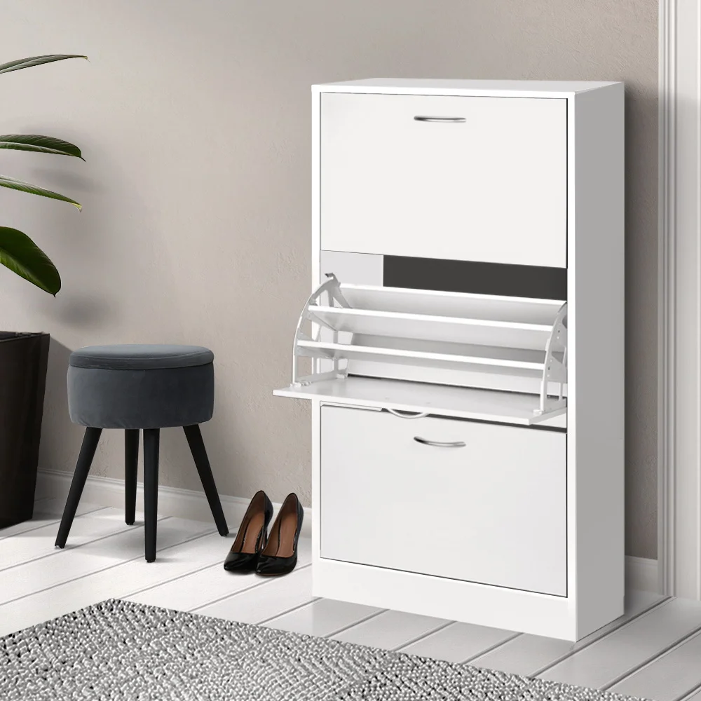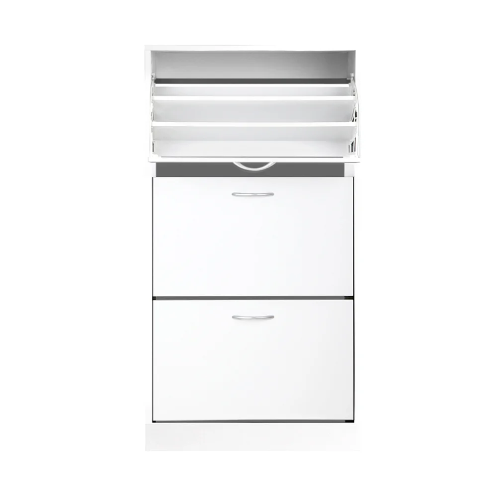 Artiss White Shoe Cabinet Storage Drawer - Holds 45 Pairs, 3 Flip-Up Drawers, Adjustable Shelves, 121cm Height