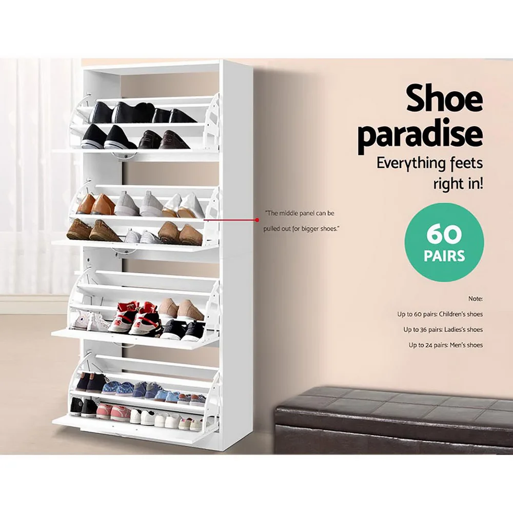 Artiss Shoe Rack Cabinet - White, 4 Doors, Holds 60 Pairs, Melamine Particle Board, Adjustable Shelves, 160cm Tall