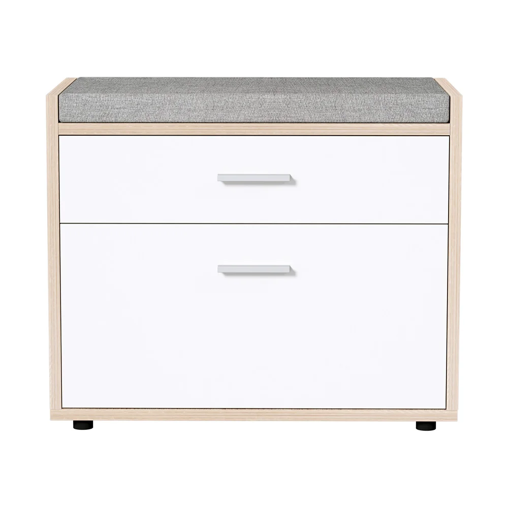 Get organised with the Artiss Shoe Rack Cabinet Bench, a chic fusion of style and functionality. This elegant piece serves as both a plush stool and a spacious shoe storage solution, accommodating up to 8 pairs of shoes. The adjustable middle panel allows for larger footwear, and the top drawer provides space for essentials. Made from sturdy particle board with a smooth veneer finish, it’s durable and easy to maintain. Ideal for hallways, it seamlessly blends with any décor while keeping clutter at bay.