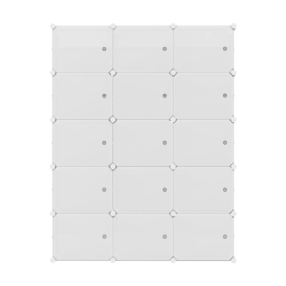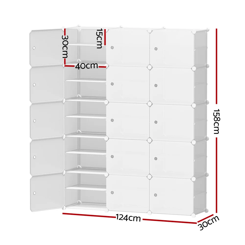 Artiss 15 Cube Shoe Rack Storage Cabinet - Stackable, Eco-Friendly PP Plastic, 124x30x158cm, White, Ventilated Design