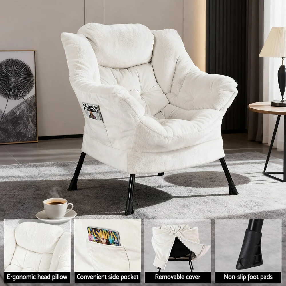 Artiss Velvet White Armchair & Ottoman Set - Premium Comfort, Sturdy Metal Frame, Ergonomic Design, Easy Assembly