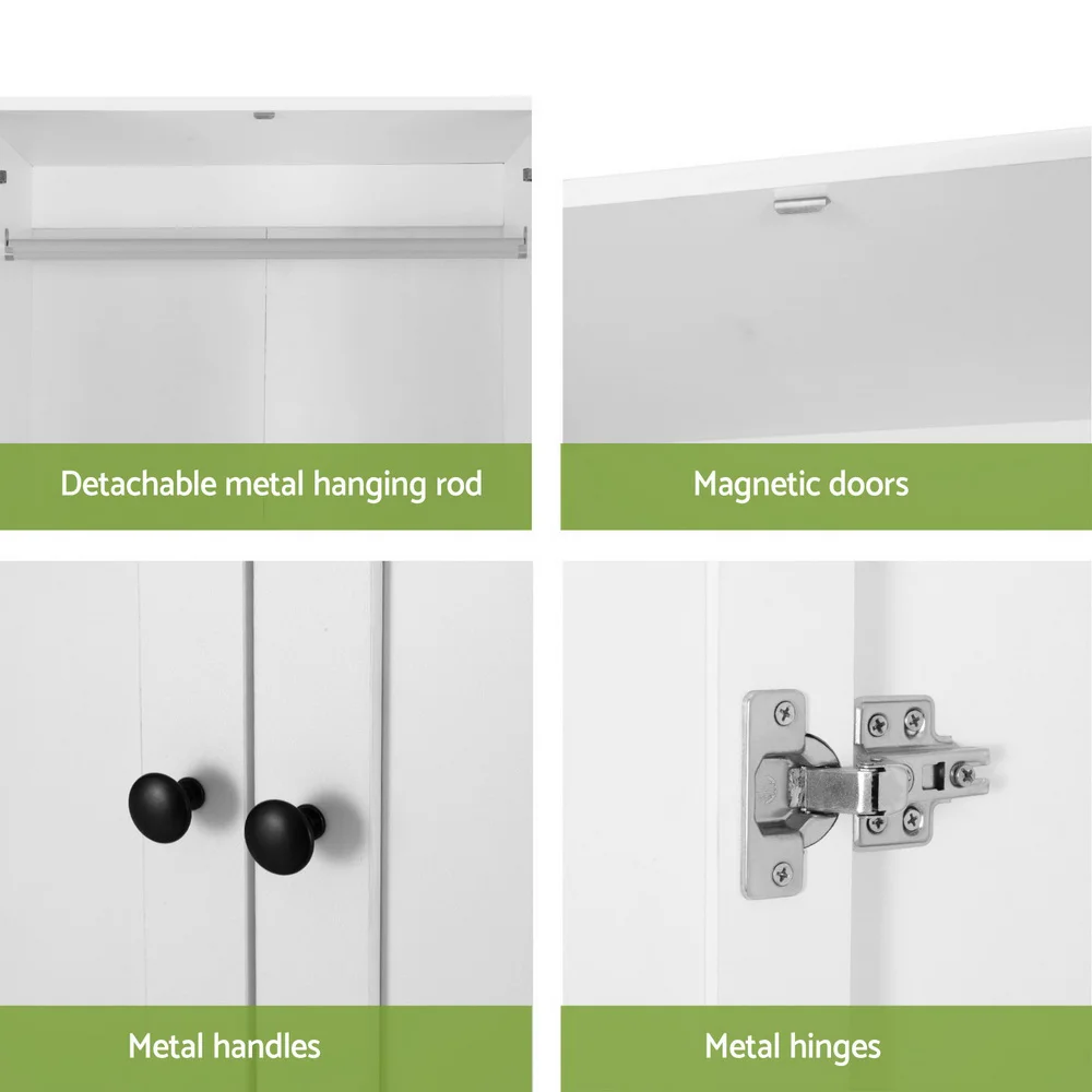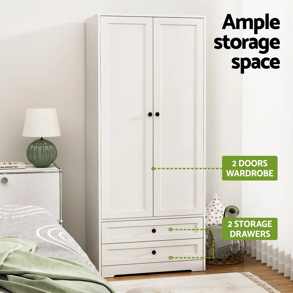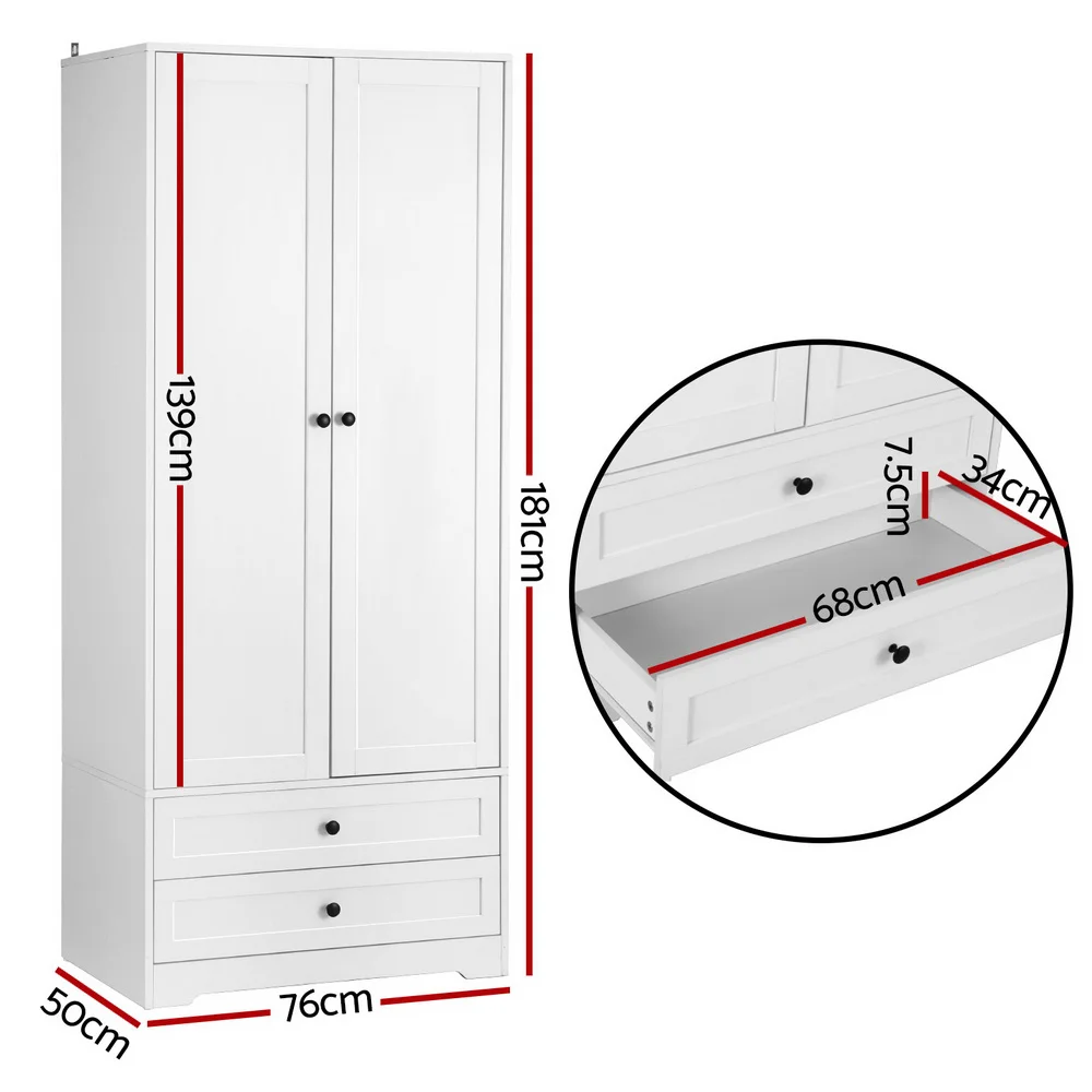 Artiss White Wardrobe Clothes Closet Storage Organiser - 2 Drawers, 2 Magnetic Doors, 76x50x181cm, Easy Assembly