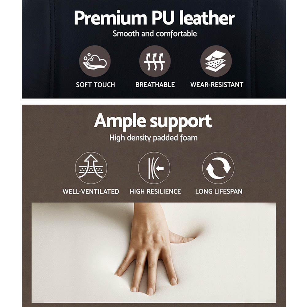Artiss Kea Executive Office Chair White Leather, High Back, Lumbar Support, Tilt, Retractable Armrests, 150kg Capacity