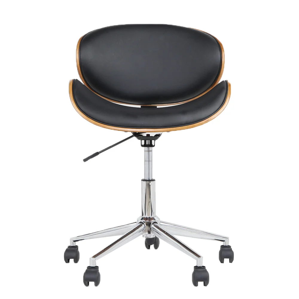 Add a dash of retro charm and modern comfort to your workspace with the Artiss Wooden Office Chair. Featuring a curvy seat, winged backrest, and a sleek combination of black PU leather and a rich wooden frame, this chair is designed to blend effortlessly with any decor. Enjoy effortless movement with five castor wheels, 360° swivel, and easy height adjustment via a TUV certified gas lift. The cushioned back and seat provide all-day comfort, making it perfect for your home or office. Easy to assemble and ready to impress!