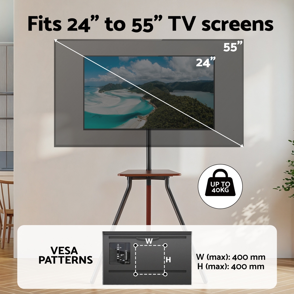 Enhance your home entertainment with the Artiss TV Stand Wooden Tray, designed for TVs from 24" to 55". Crafted with a premium solid wood base and reinforced steel frame, this stand delivers both style and strength. The sleek black finish complements any decor, while a stepless height adjustment and ±90° swivel offer the perfect viewing angle. Universal VESA compatibility and integrated cable management ensure a clutter-free setup. Complete with a sound bar tray, the Artiss TV Stand brings elegance and functionality to your living space.