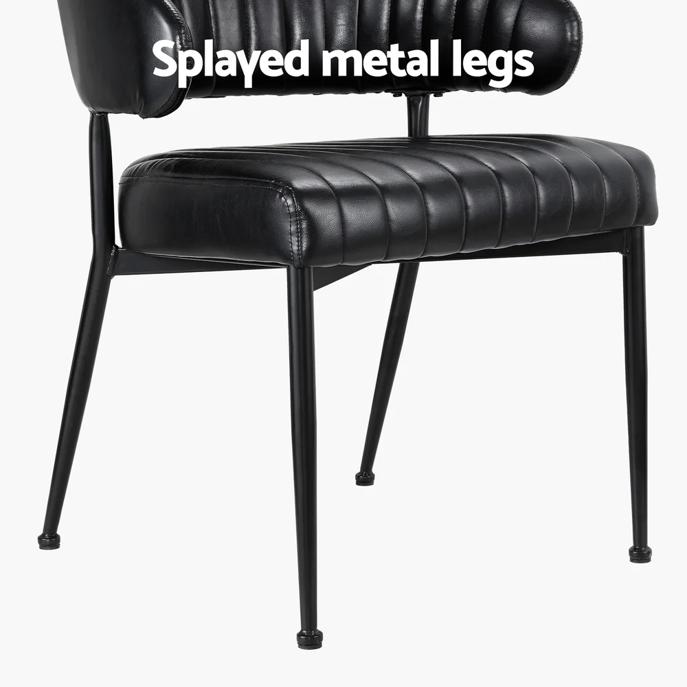Artiss Yolanda Dining Chairs Set of 2, Black PU Leather, Metal Frame, 150kg Capacity, 49x52x77cm, 1-Year Warranty