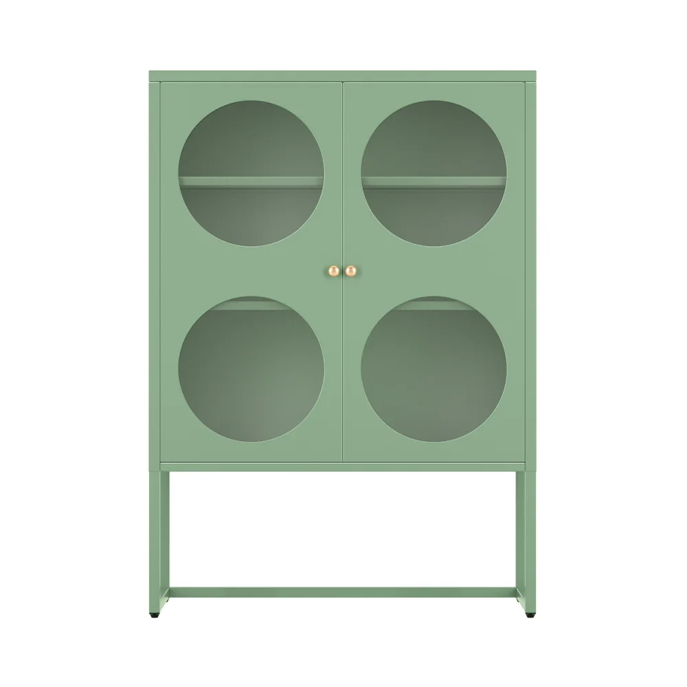 Revitalise your living space with the ArtissIn Ella Buffet Sideboard in ELLA Green, a perfect blend of modern functionality and timeless design. Crafted from high-quality cold-rolled steel, this two-door cabinet boasts stylish circular glass panels and adjustable shelves, offering ample storage for your essentials. With a sleek, easy-to-clean surface and adjustable feet pads, it ensures stability and floor protection. Enhance your home with this contemporary statement piece today!
