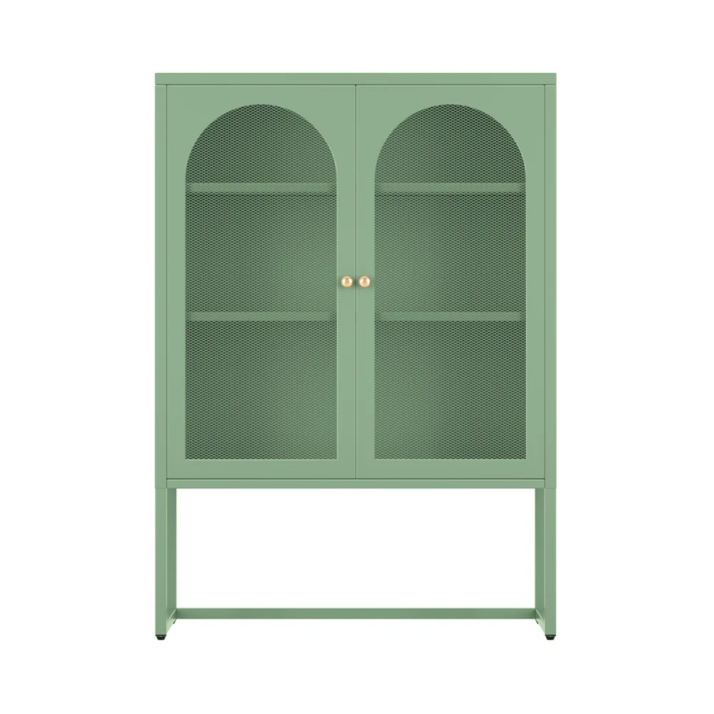 Revitalise your living space with the ArtissIn Elma Buffet Sideboard in ELMA Green. This chic and functional piece combines modern design with timeless appeal. Crafted from high-quality cold-rolled steel, it features two stylish mesh-paneled doors and adjustable shelves, offering ample storage for your essentials. With a smooth, easy-to-clean surface and adjustable feet pads, it's both practical and elegant. Secure it to the wall with built-in anchors for added safety. Transform your home with the Elma today.