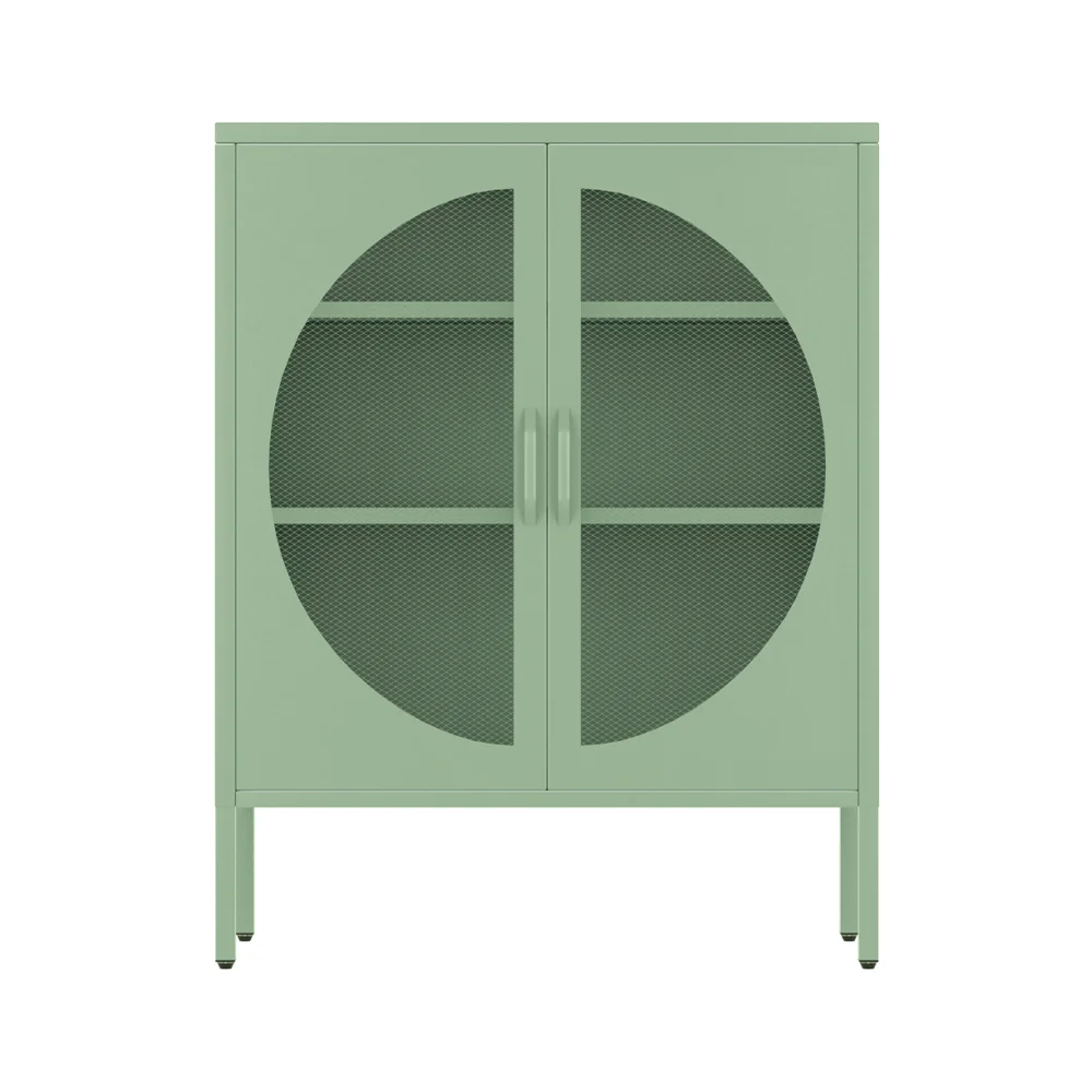 ArtissIn Buffet Sideboard Metal Cabinet, Cold-Rolled Steel, ELMA Green, 85x40x120cm, Modern Storage with Mesh Doors