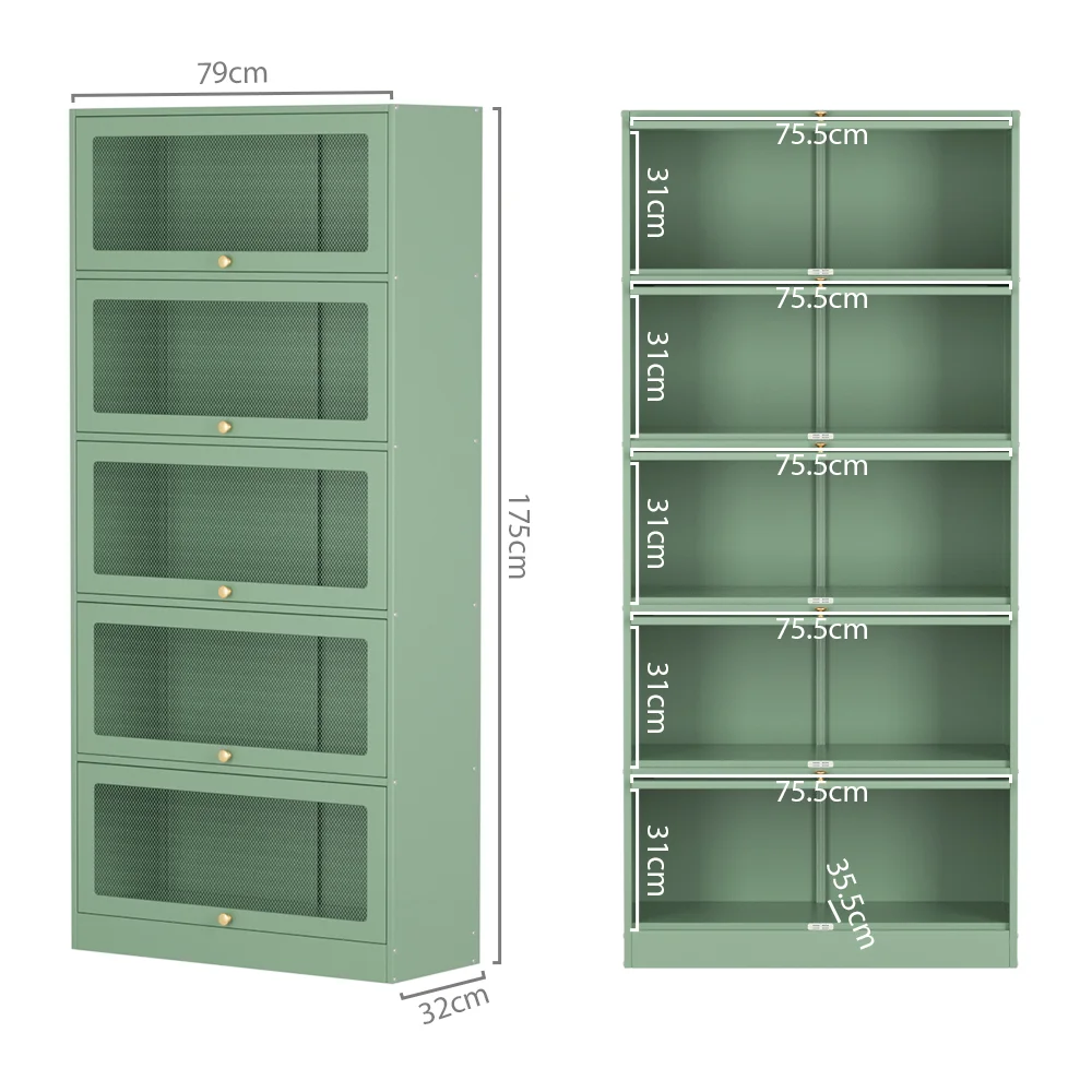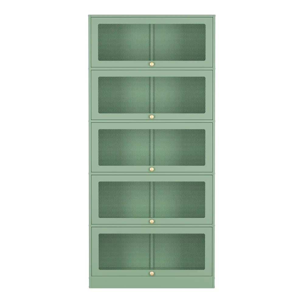 ArtissIn Elia Buffet Sideboard Cabinet, Cold Rolled Steel, Light Green, 79x32x175cm, Mesh Doors, Modern Storage Solution