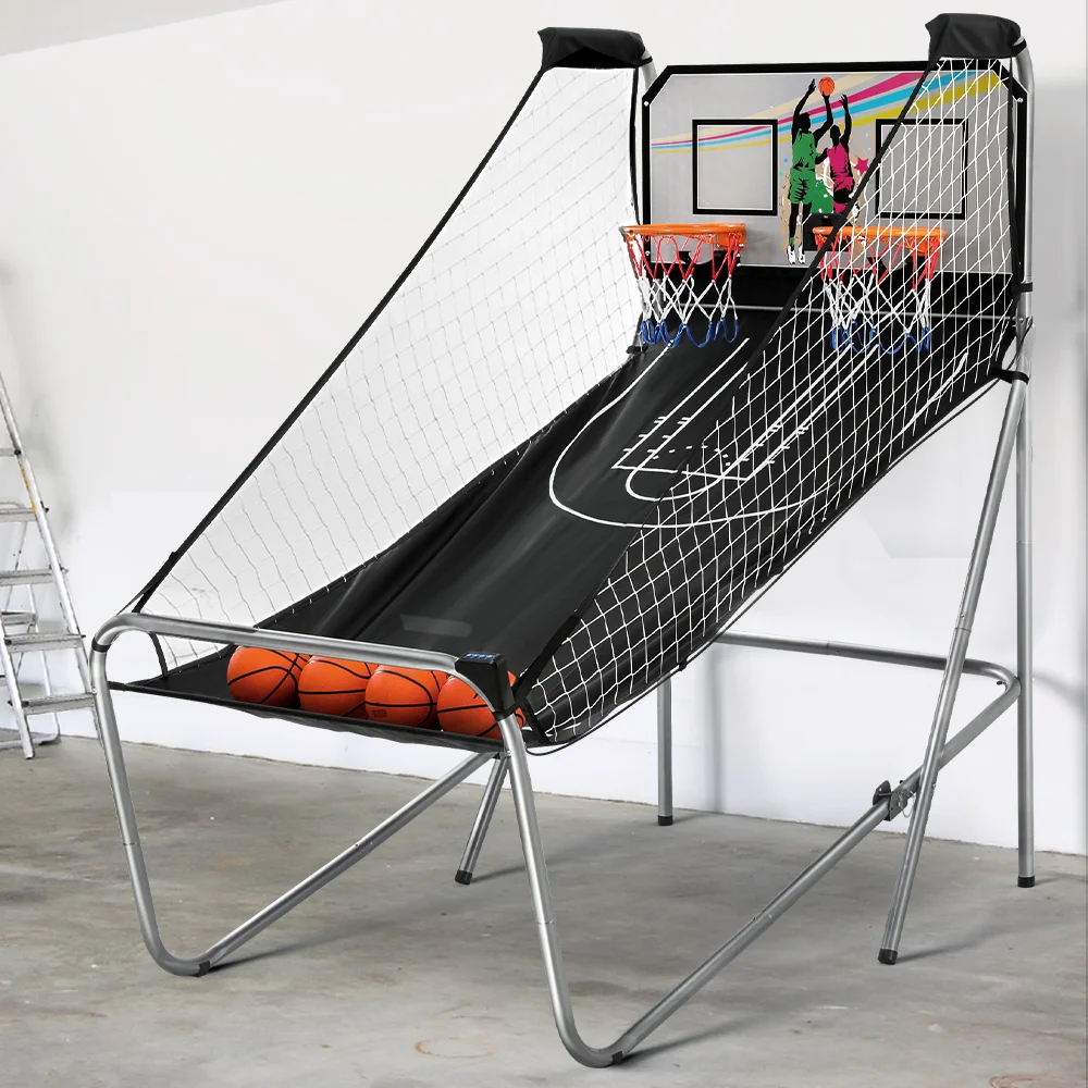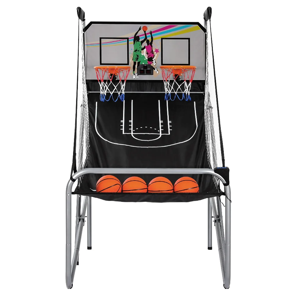 Basketball Arcade Game Double Shoot with Electronic Scorer, Steel Frame, 8 Games, 205x70x205cm, Indoor Outdoor