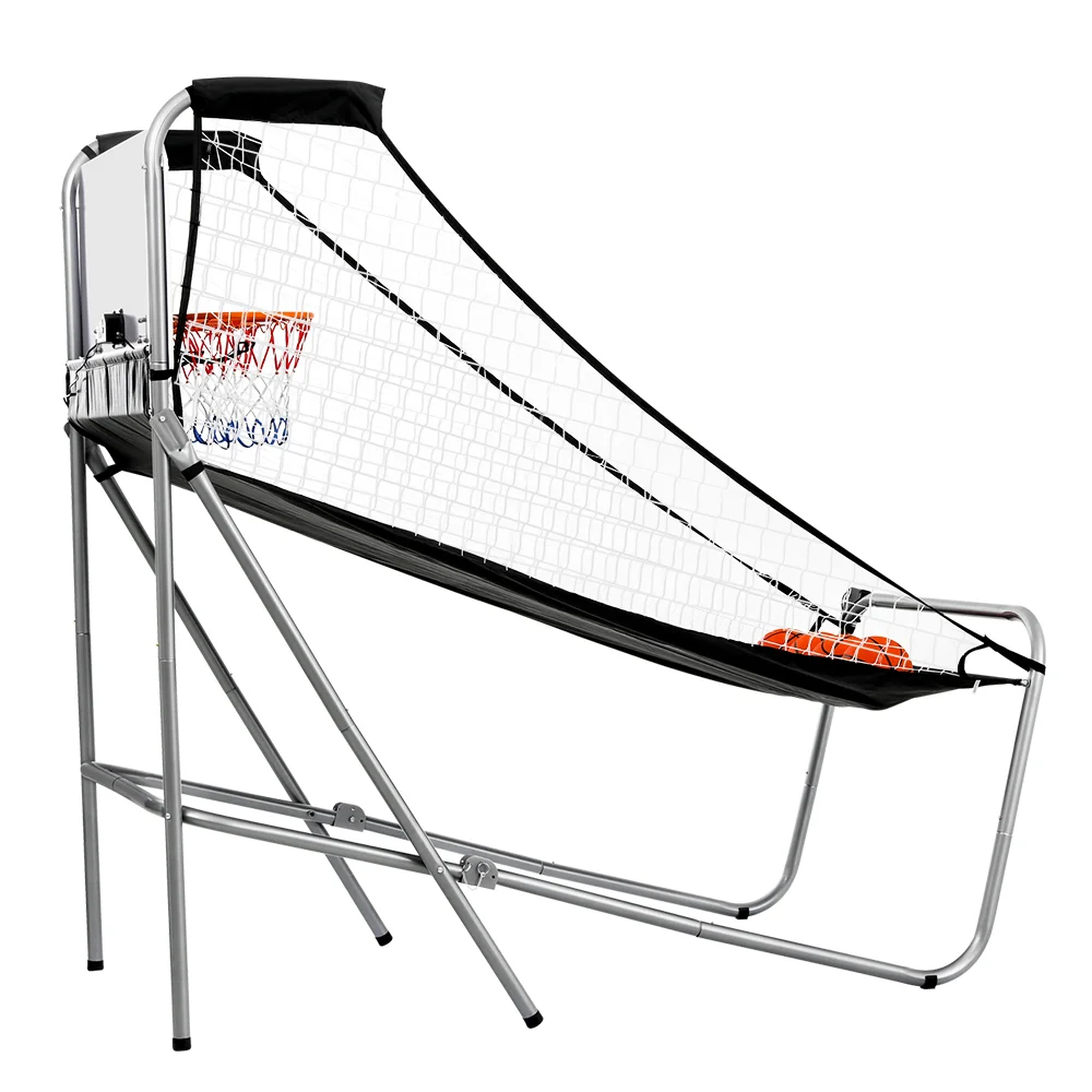 Experience the excitement of arcade basketball at home with the Basketball Arcade Game Electronic Scorer! Crafted from rust-resistant steel tubes and waterproof, stain-resistant polyester fabric, this durable game is perfect for indoor or outdoor fun. Enjoy 8 thrilling game modes with friends and family, enhanced by realistic sound effects and an LED automatic score counter for fair play. The high net ensures quick ball returns, while the stable triangle frame and anti-slip feet guarantee steady gameplay. Easy to assemble and foldable for portability, it includes four bonus basketballs for endless entertainment. Game on!