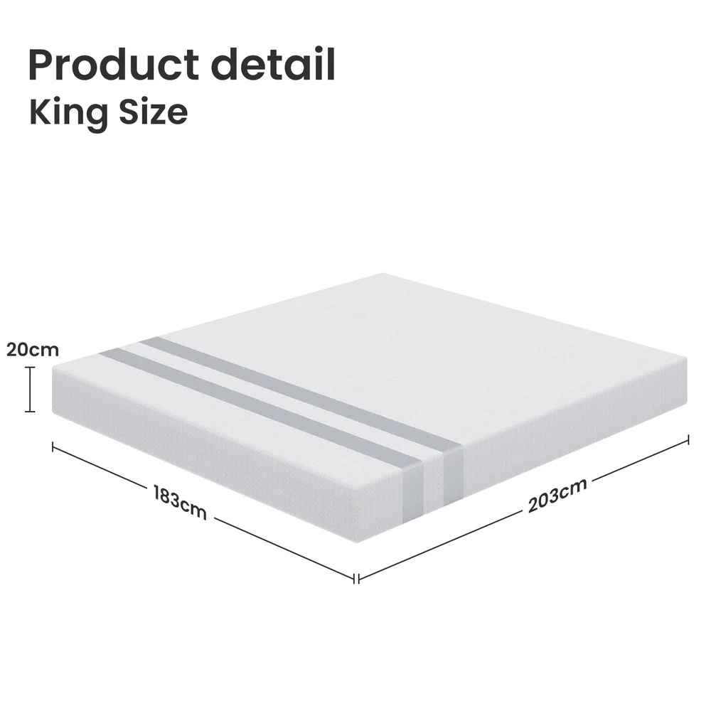 Experience unparalleled comfort with the BedStory King Memory Foam Mattress. This 20cm cooling gel foam mattress is crafted from eco-friendly CertiPUR-US and OEKO-TEX Standard 100 certified materials, ensuring safety, comfort, and sustainability. The gel-infused memory foam layer regulates temperature, while high-density support foam enhances durability and airflow. Designed to contour to your body, it offers customised support and spinal alignment for any sleep position. With medium soft firmness and a dual-sided design, you can adjust the feel to your liking. The machine-washable cover ensures easy maintenance, making it ideal for homes, caravans, or guest rooms. Allow 48–72 hours for full expansion.