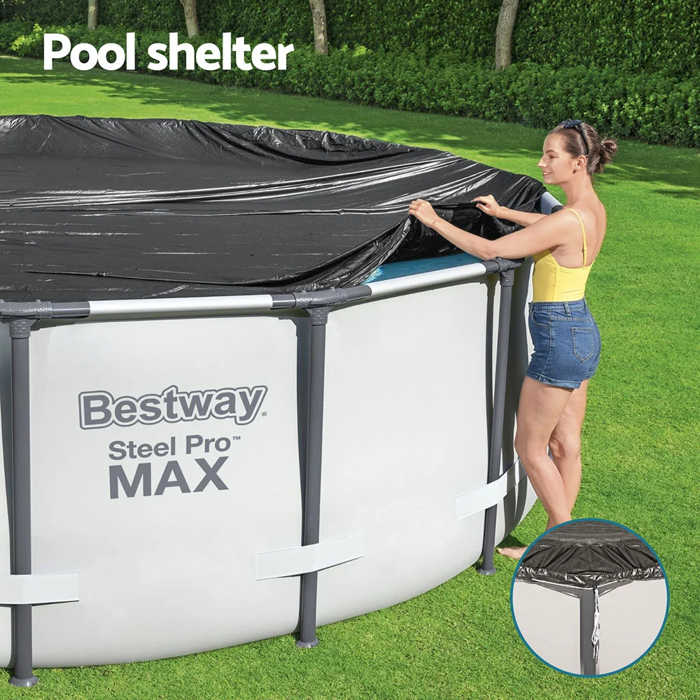 Bestway 3.05m Round Pool Cover, Durable UV-Resistant PVC, Fits Above-Ground Pools, Rope Ties & Drain Holes Included