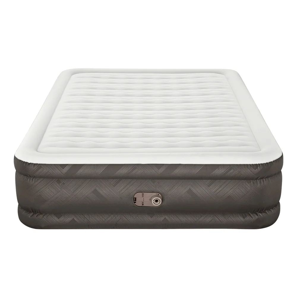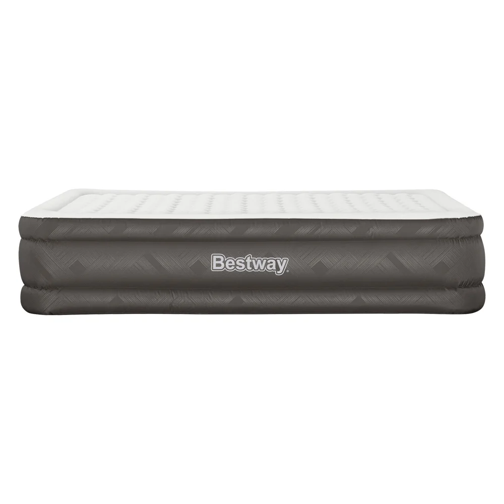 Bestway Queen Air Mattress - 46cm Flocked Surface, I-Beam Construction, Rapid Inflation with Built-In Pump, Grey